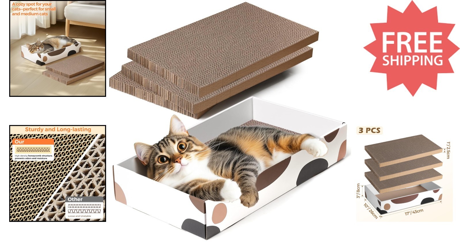 Protect Your Furniture with 17x10 Inch Cat Scratching Boards - 3 Pack Set
