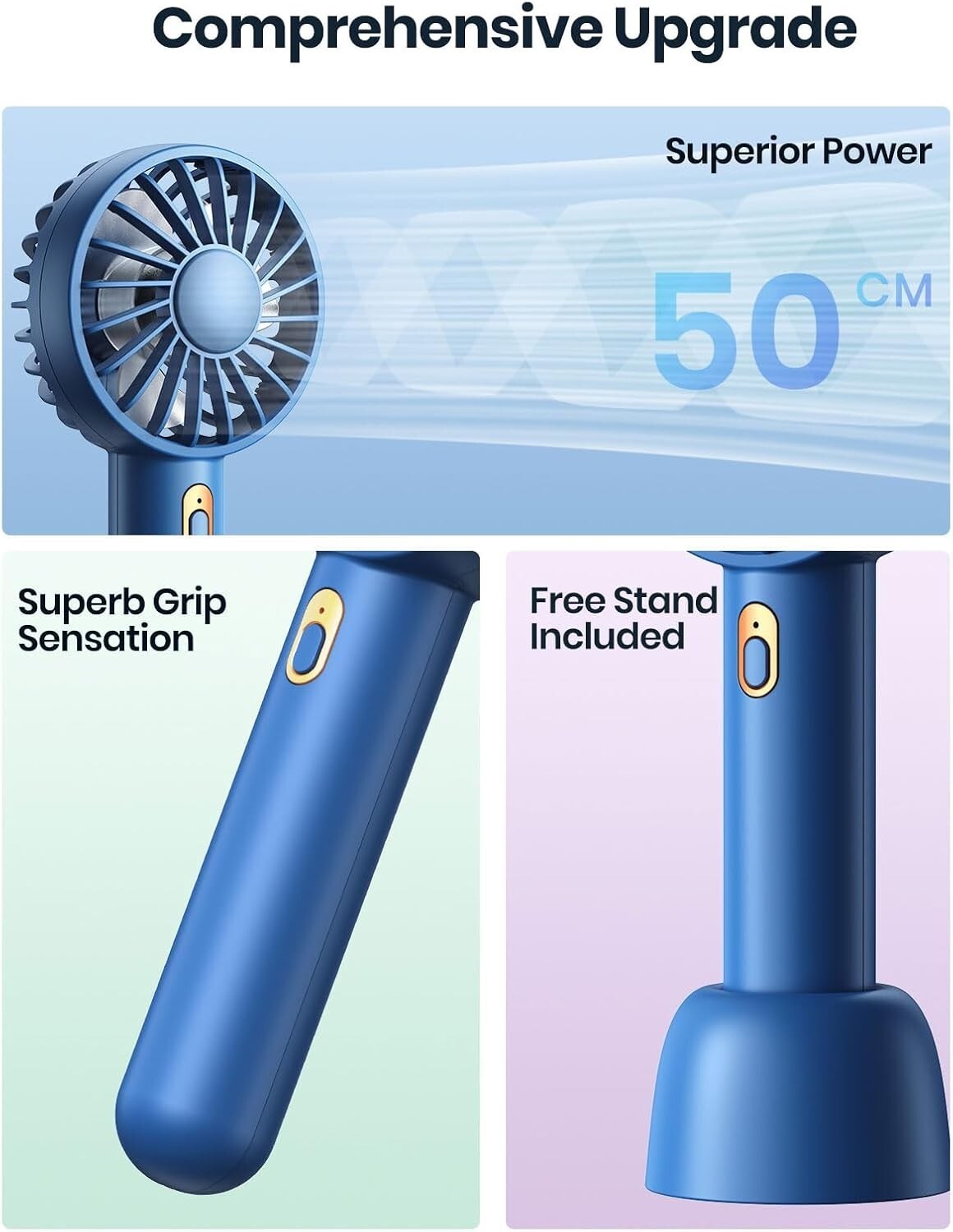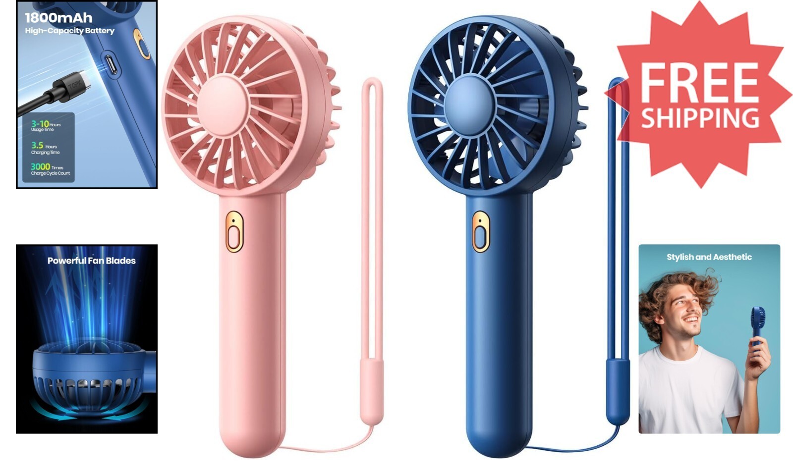 Fashionable Mini Fan Duo in Blue & Pink: Handheld & Desktop Cooling Power