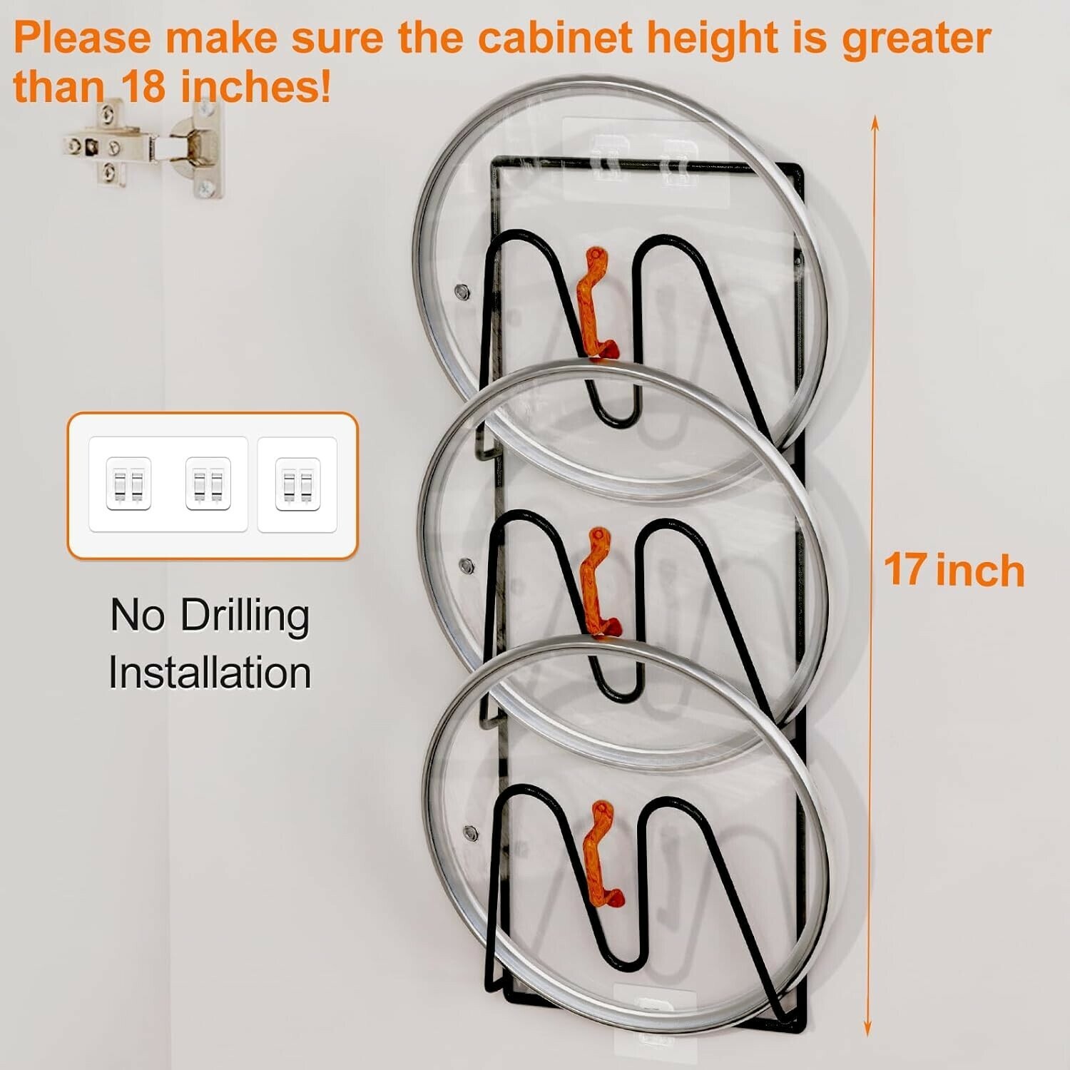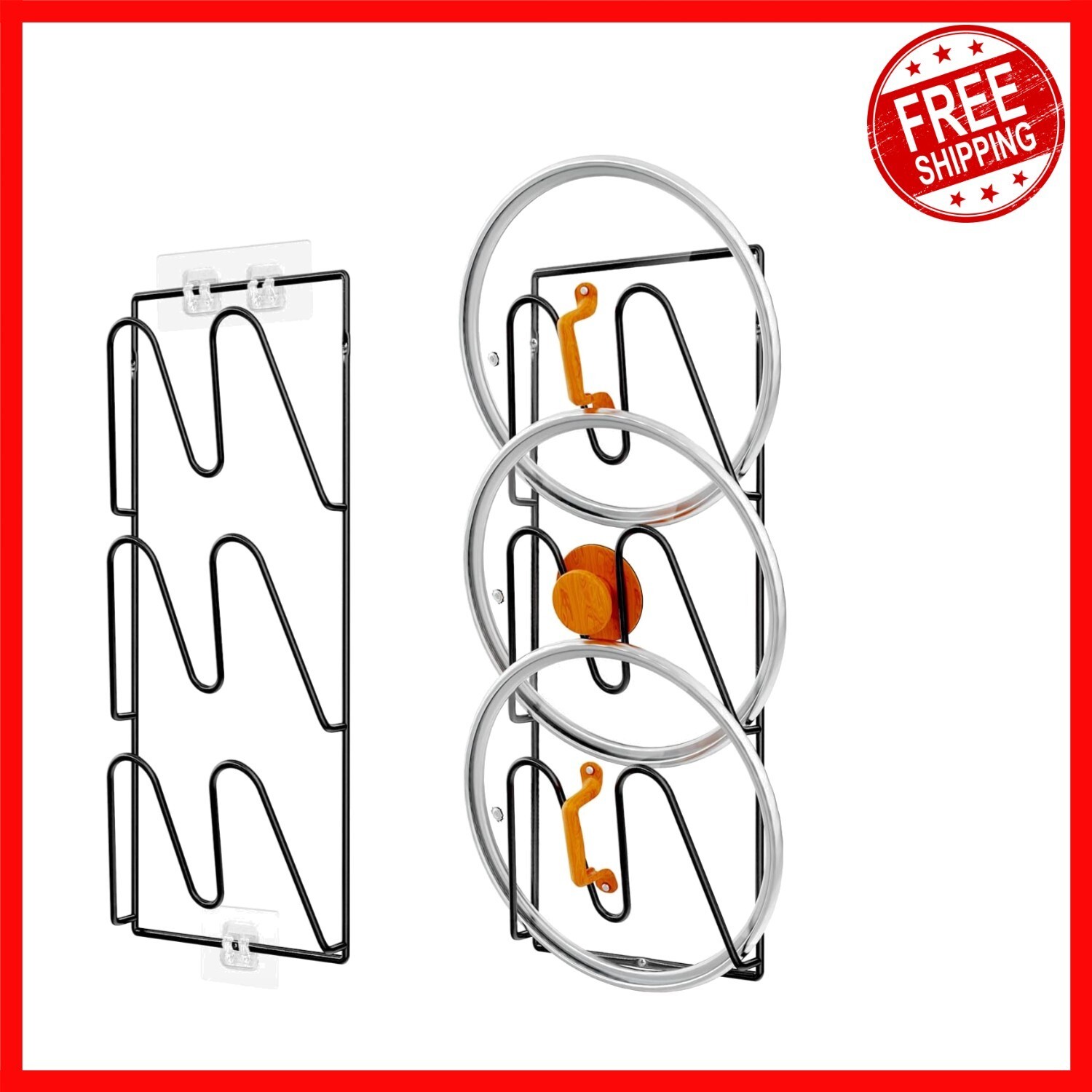 2 Pack Pot Lid Holder with U-Slot Design - Wall Mount, No Drill Installation