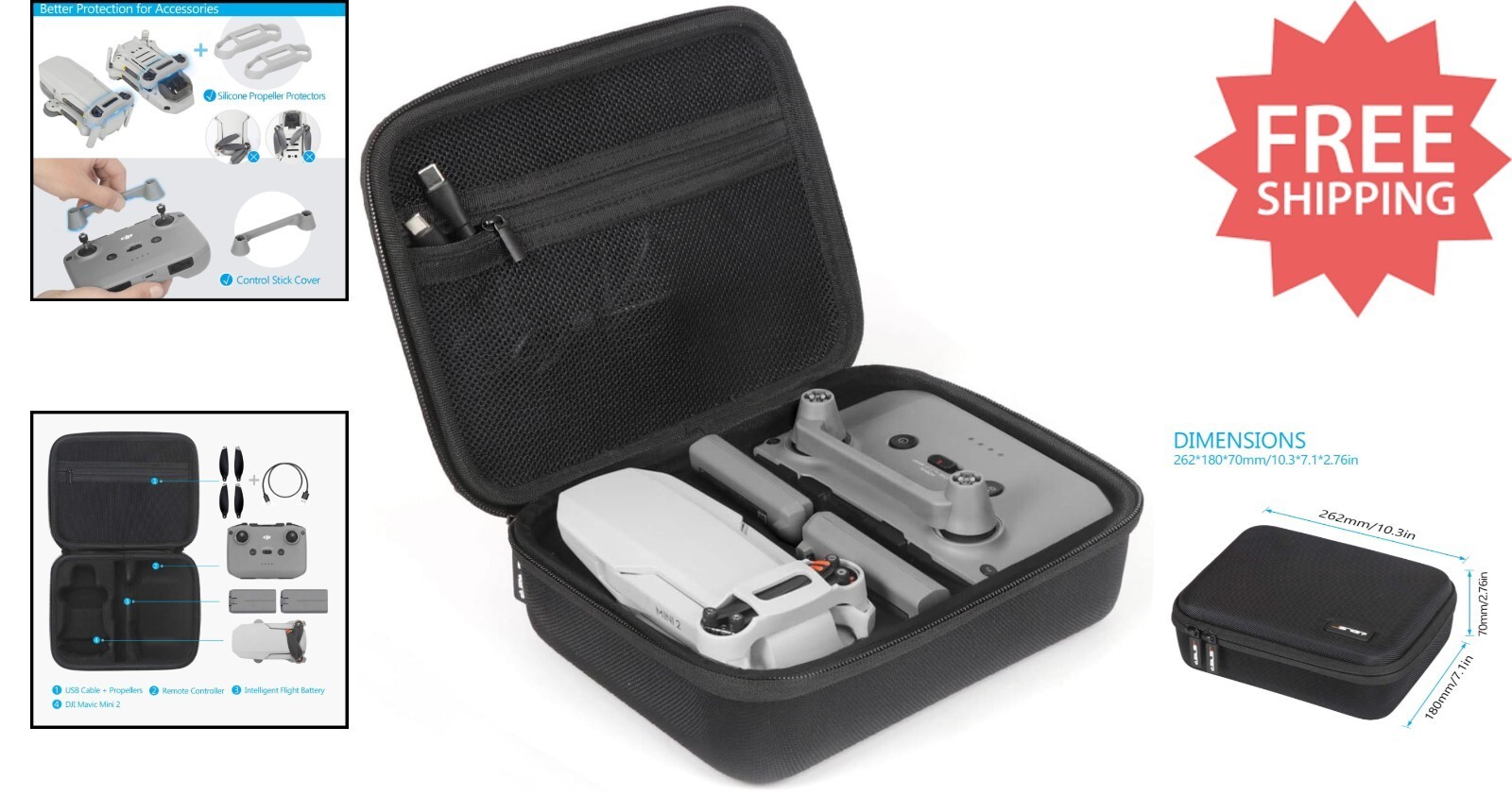 Discover the ultimate protection for your DJI Mavic Mini 2, Mini 2 SE, or Mini 4K with our specially designed carrying case. Crafted from durable EVA with a high-density outer shell and padded interior, it safeguards your drone from scratches, impacts, and dust. The custom-cut foam securely holds your drone and essential accessories, including batteries and remote control. Additional storage compartments for small items like cables and spare propellers, along with included silicone protectors and a control stick cover, make traveling with your drone convenient and secure. The case features a double zipper for easy access and comes with a handy hand strap for portability.