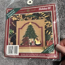 The VTG 1995 Mill Hill Holiday III Christmas Morning MHCB52 Cross Stitch Kit is a framed picture featuring a festive holiday theme. This kit includes buttons and is designed by Mill Hill, a renowned brand in cross stitch. Made in the United States, this kit is perfect for those who enjoy embroidery and needlecrafts. Create a beautiful Christmas morning scene with this vintage kit that offers a unique and detailed cross stitch design.