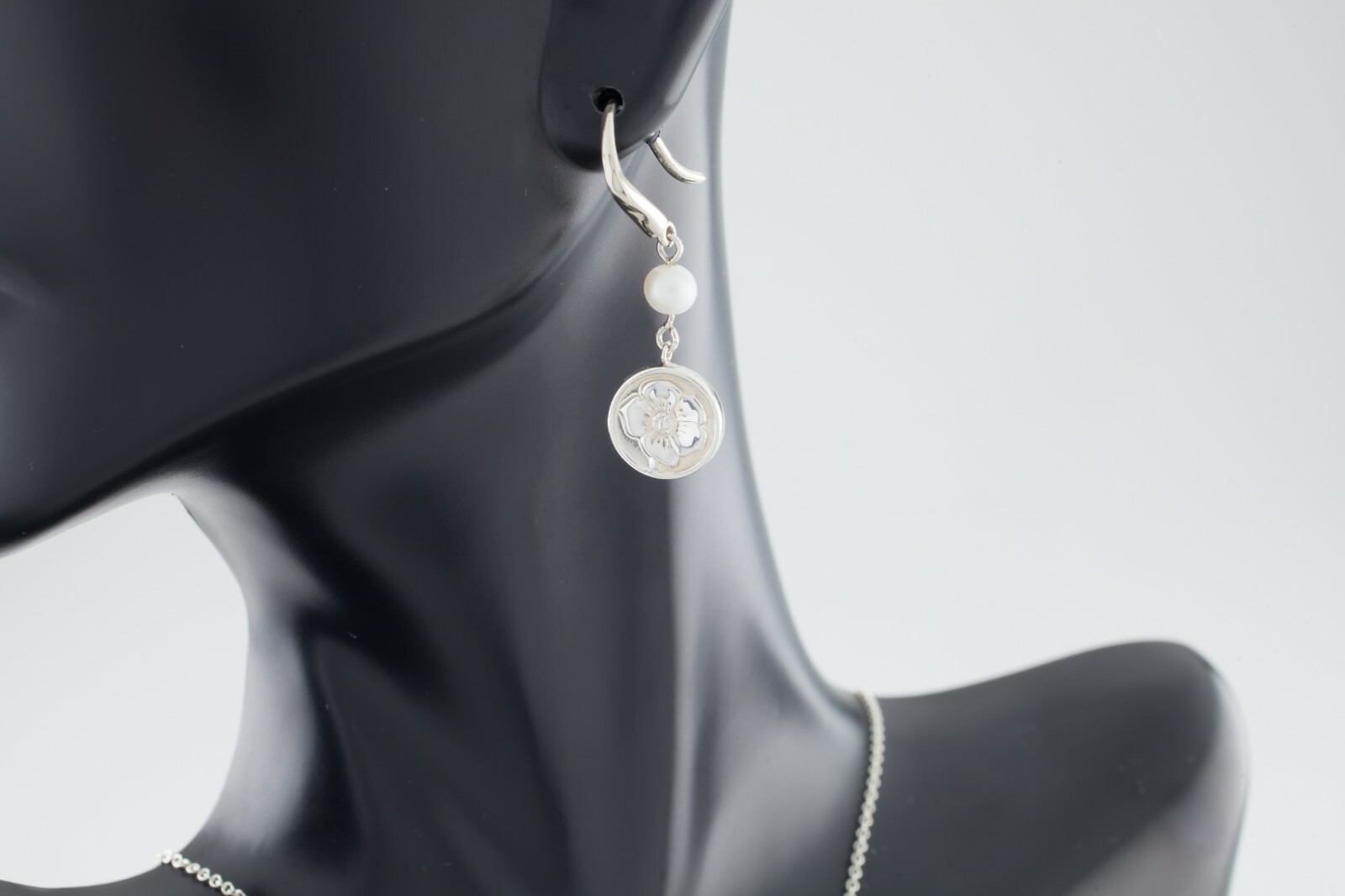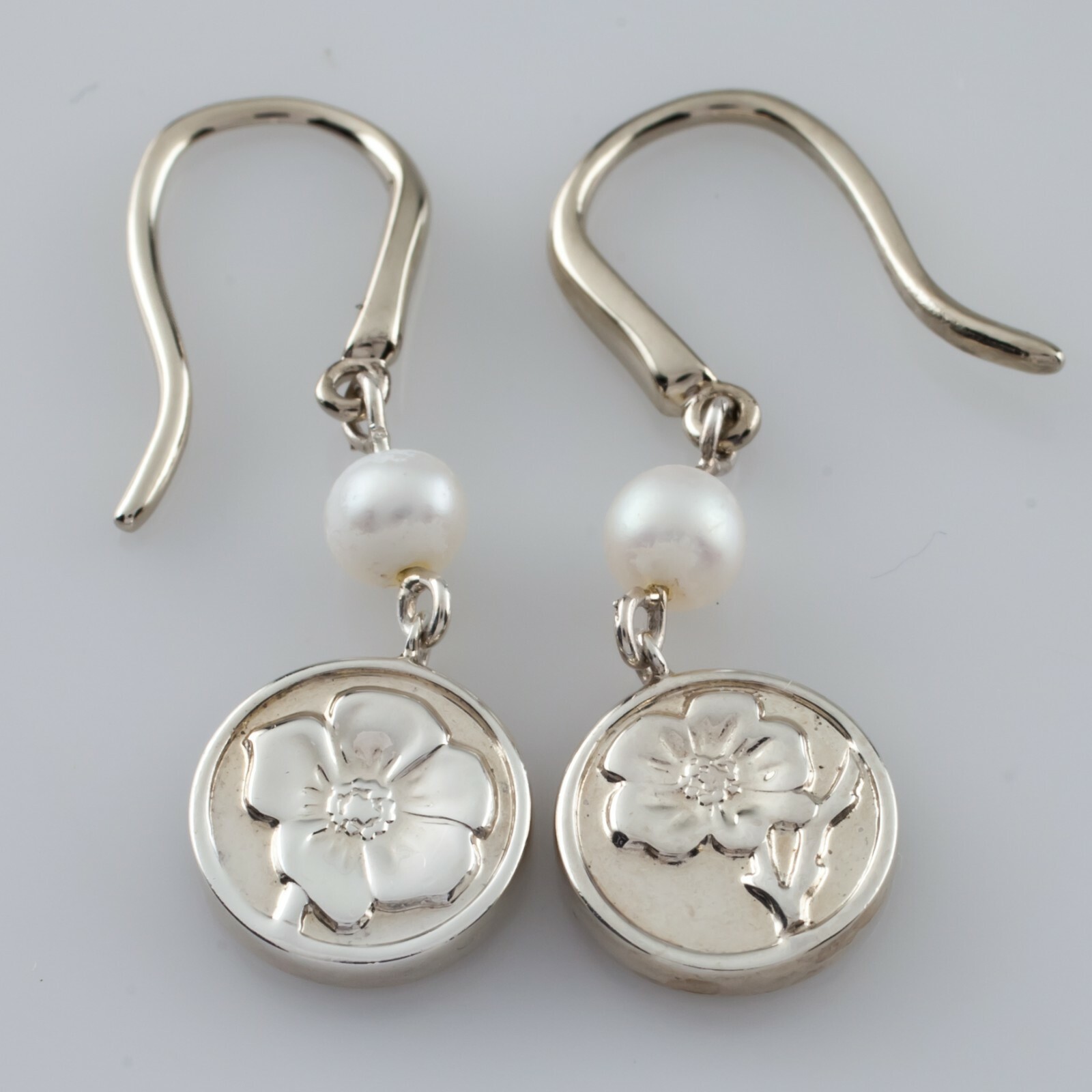 Tiffany Co. Sterling Silver Nature Rose Pendant and Earring Set Nice! Gorgeous Sterling Silver Jewelry Set from Tiffany Co. Includes Nature Rose Pendant Features Small Disk w/ Pearl Accent Total Length of Drop = 20 mm Includes 16" Tiffany Co Chain Includes Nature Rose Drop Earrings Length of Drop = 31 mm Total Mass of Set = 4.3 Gorgeous Gift! Pieces are in Good Condition. Show Few Signs of Aging or Wear. NOTE: some wear (nacre rubbing off) evident on pearls. The appraisal certificate is not included with the item. Local Pick-up is available in our showroom. (Contact us for payment methods to pay on pickup.) California Buyers: 9.5% sales tax will be added. Returns Policy: About Us: Continental Coin and Jewelry Company Web Department: Monday - Friday, from 10:30am - 6pm PST