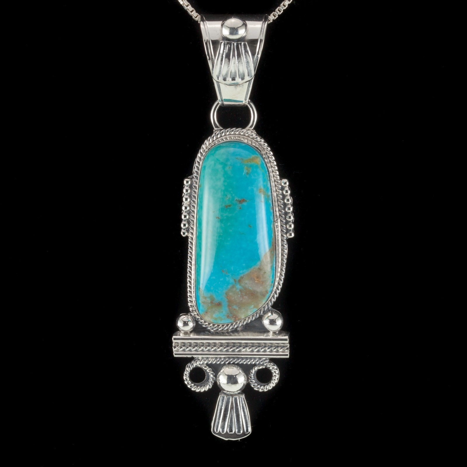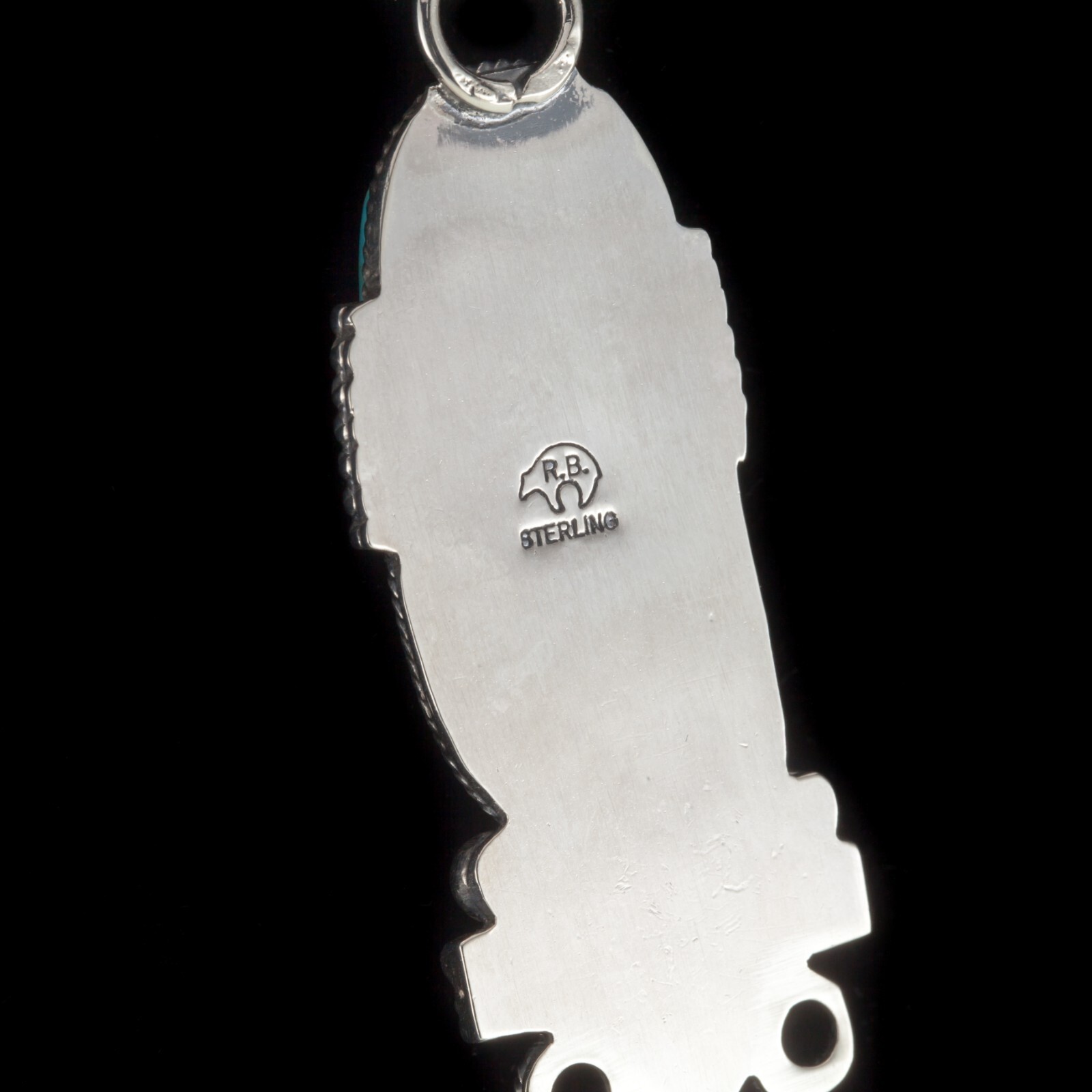 Unique R.B. Running Bear Sterling Pendant with a beautiful Turquoise center stone