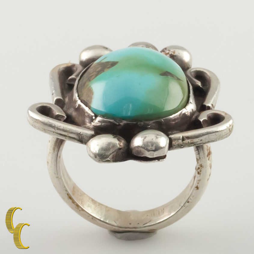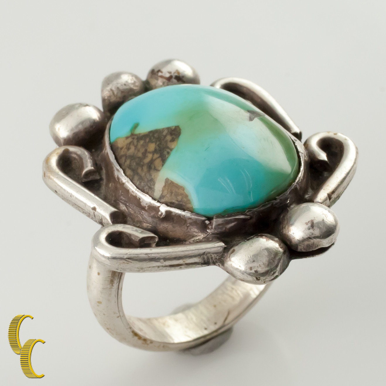 Navajo Silver Turquoise Ring Gorgeous Patina Size 7 Great Gift!