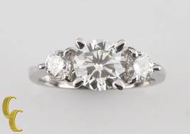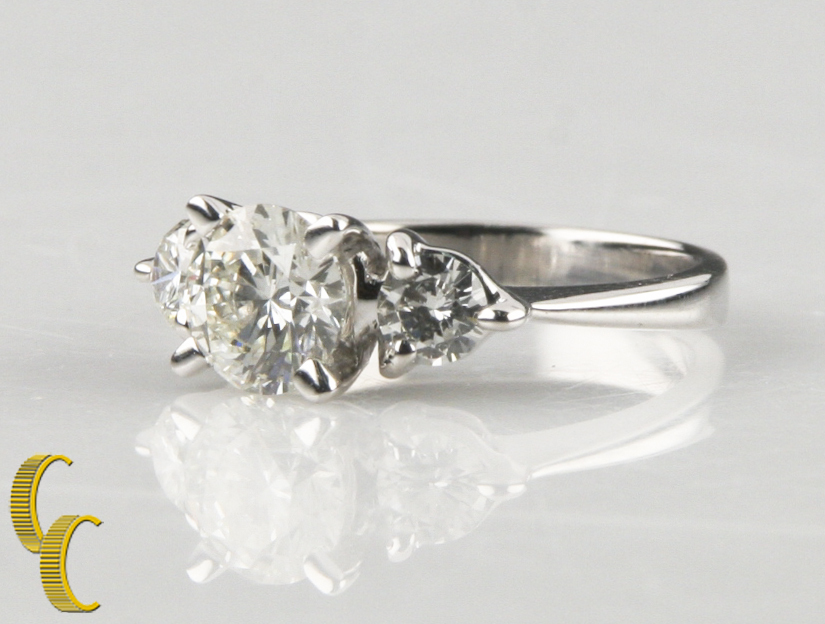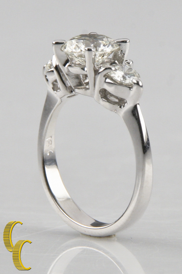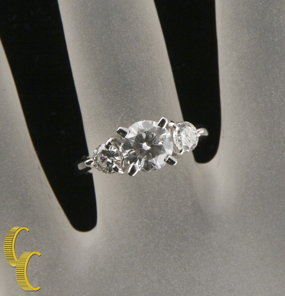 1.50 carat Round Brilliant 18k White Gold Engagement Ring w/ EGL Cert Size 4.5 Gorgeous 18k White gold Three-Stone Engagement Ring