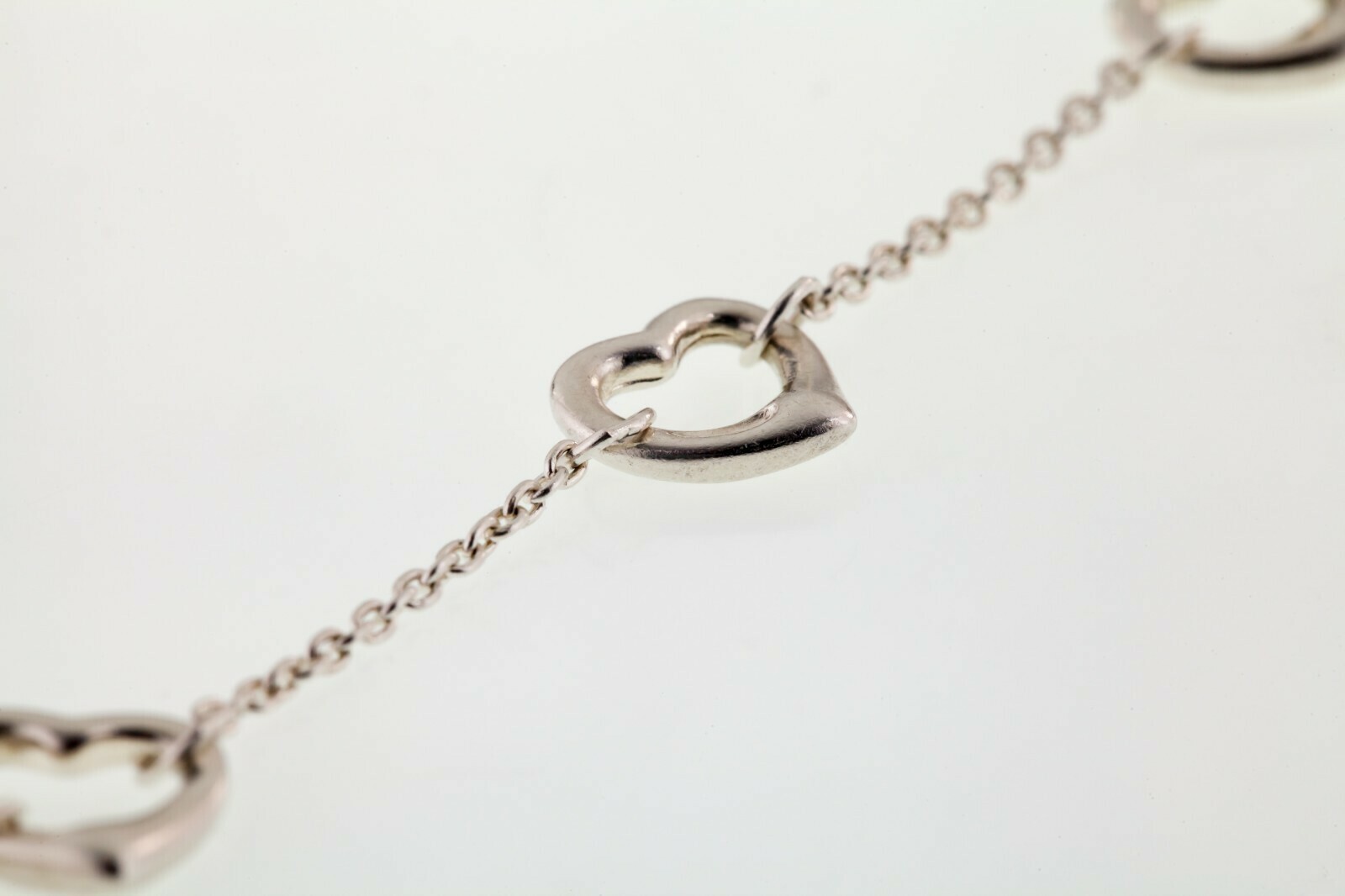 Sterling Silver Open Heart By the Yard Bracelet 6.75" Gorgeous Sterling Silver Bracelet Similar to the Designer version All shipments include insurance and delivery confirmation or signature confirmation. Local Pick-up is available in our showroom. All international packages will have the required customs declaration and value of order. Your continuing satisfaction is very important to us. We offer a 30 day money back return policy. If you are unhappy with your purchase for any reason, please notify us so that we can begin the returns process. All items for sale are available for viewing at our Southern California showroom. We would like to thank all of our loyal customers for their continued support. If you have any questions, comments or concerns, please click "Ask a question" bel