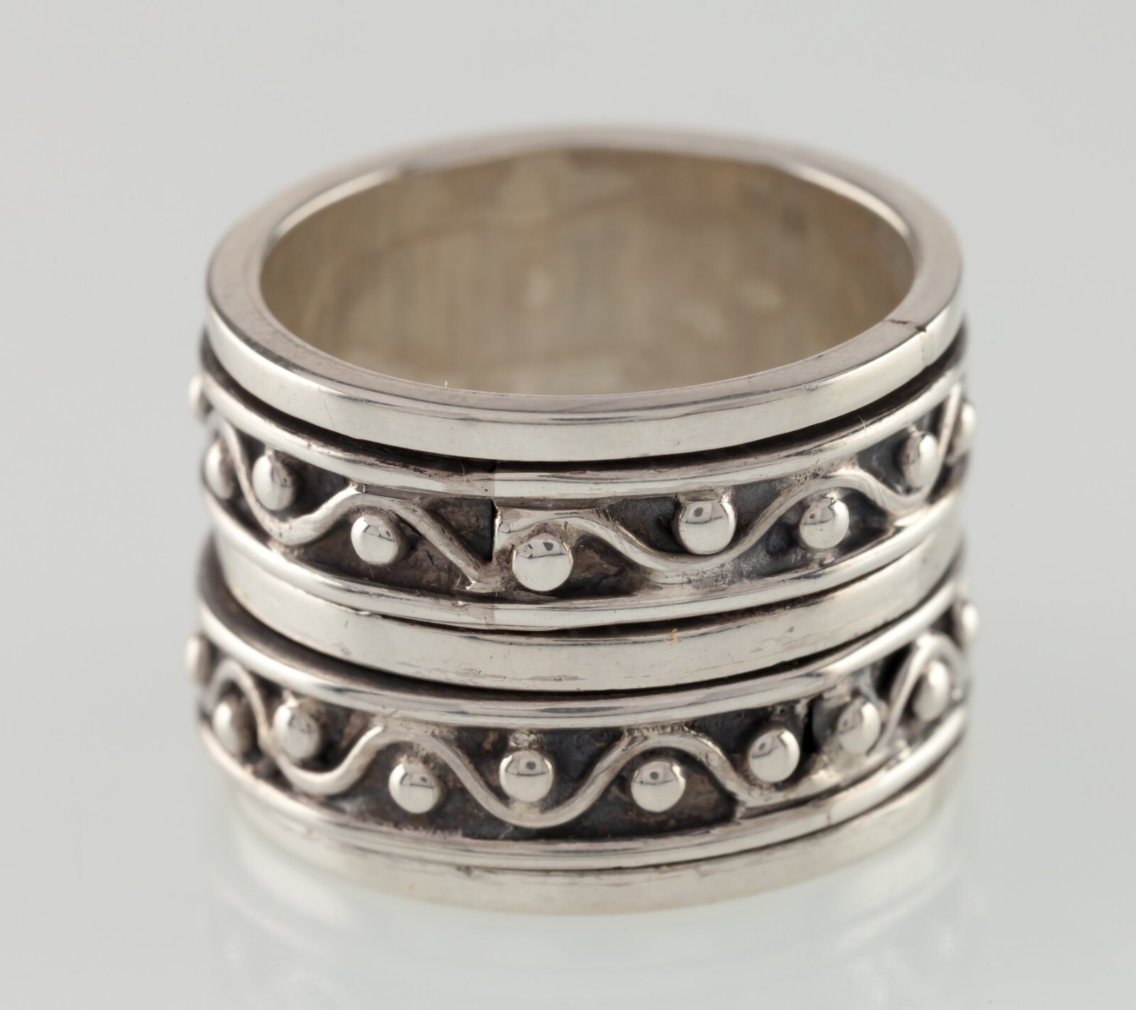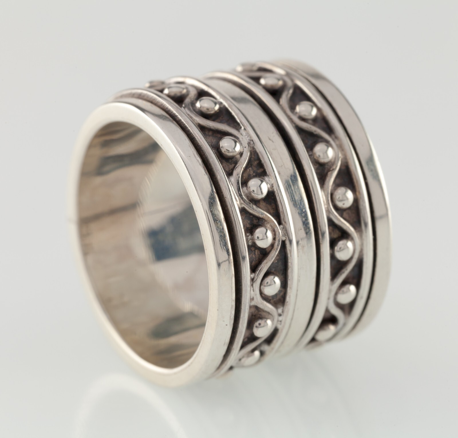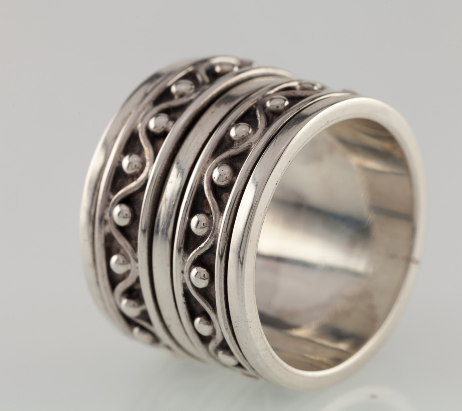 Wide Double Spinner Sterling Silver Band Ring Size 7.5