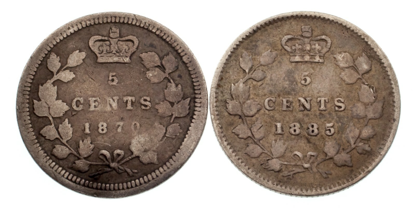 Canada 1870 and 1885 Silver 5C 2 Coin Lot Good - Fine+ Condition