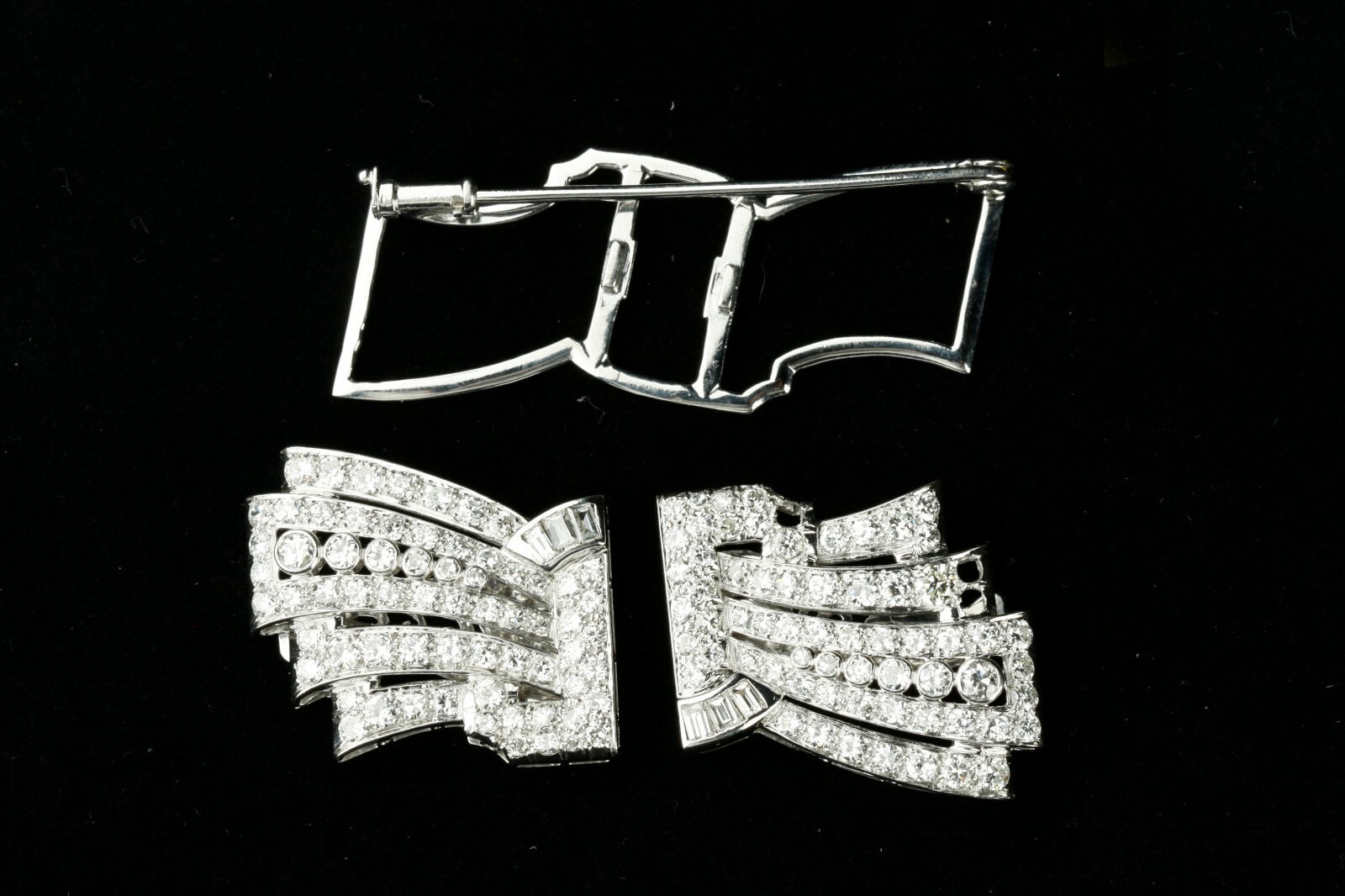 Composed of two diamond set platinum dress clips