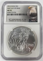 2016 Silver American Eagle MS-70 FDOI 30th Anniversary