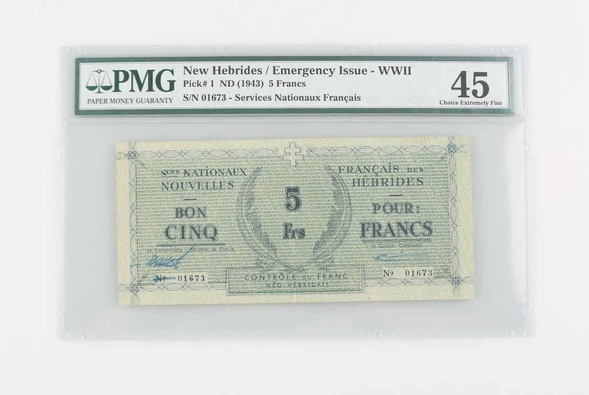 1943 New Hebrides 5 Francs CXF-45 Emergency and 29 similar items