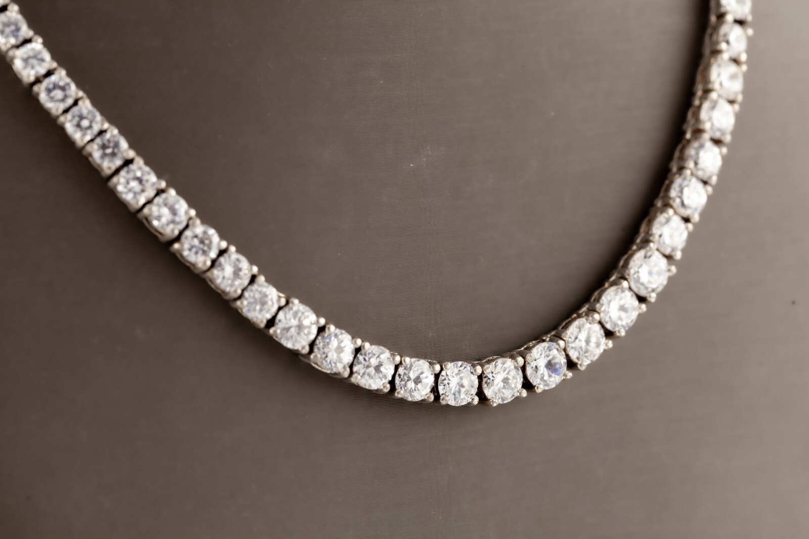 Gorgeous Tennis Necklace Featuring Graduated Round Cubic Zirconia in Four-Prong Settings
