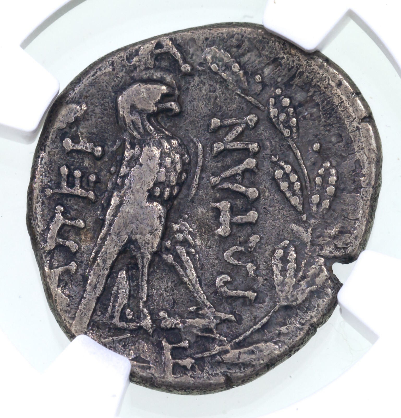 obverse: Head of Zeus of Dodona facing right wearing a wreath of oak leaves