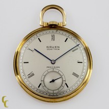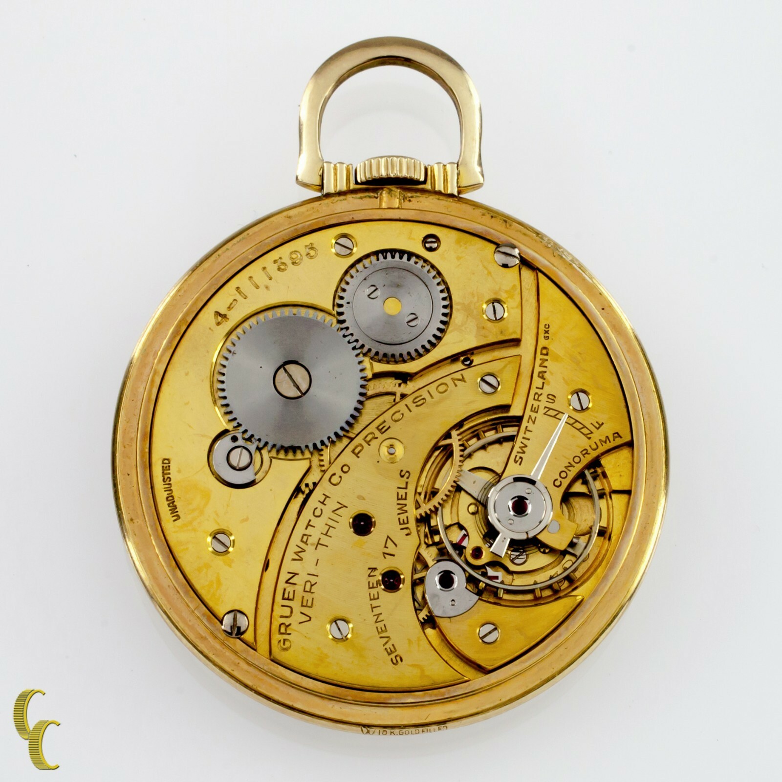 Gruen Ouvert Visage Veri-Thin 10k or Rempli Poche Montre 17 Jewels Taille 8S