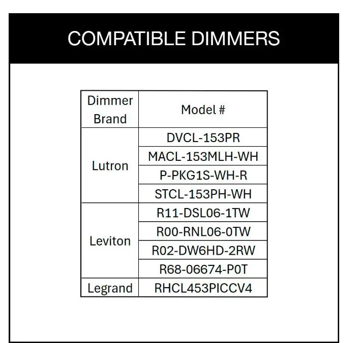 Dimmable down to 10% - Suggested LED dimmer switches LUTRON: DVCL-153PR, CTCL-153PH, LEVITON: R62-06674-POW - *Full dimmer switch located in Product Details, Additional Resources, click Specification