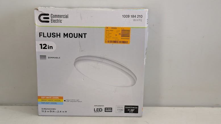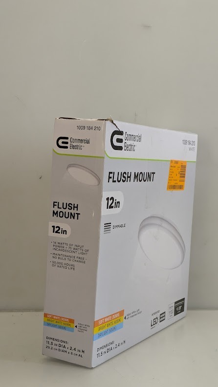 Brighten your home or office with Commercial Electric 12in. White Round LED Flush Mount Ceiling Light by replacing your outdated incandescent lights with an energy-efficient integrated LED fixture. With its low-profile design, this traditional ceiling light can be installed in spaces with low ceiling clearance and seamlessly flush into your ceiling aesthetic. Prior to installation, adjust the color temperature between Soft White, Bright White or Daylight depending on your needs and it is dimmable. While emitting 1100 Lumens of brightness, the smooth frosted lens produces crystal-clear even light distribution with no yellowing, discoloration, or dark spots over time. This flush mount offers a premium LED light engine ensuring maintenance free service with no bulbs to replace. Ideal for kitchen, laundry room, bathroom, bedroom, basement, office, corridors/hallways, and retail spaces and so much more.