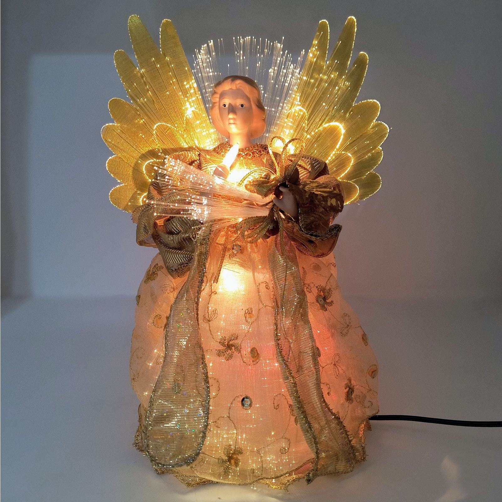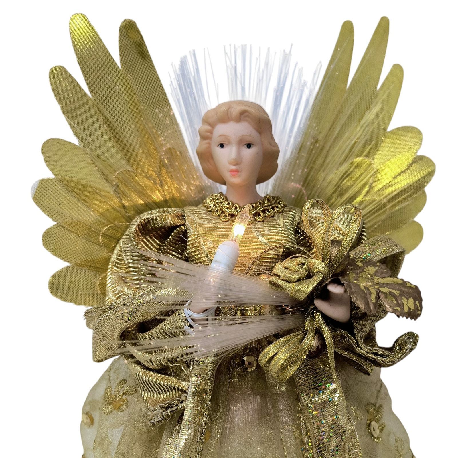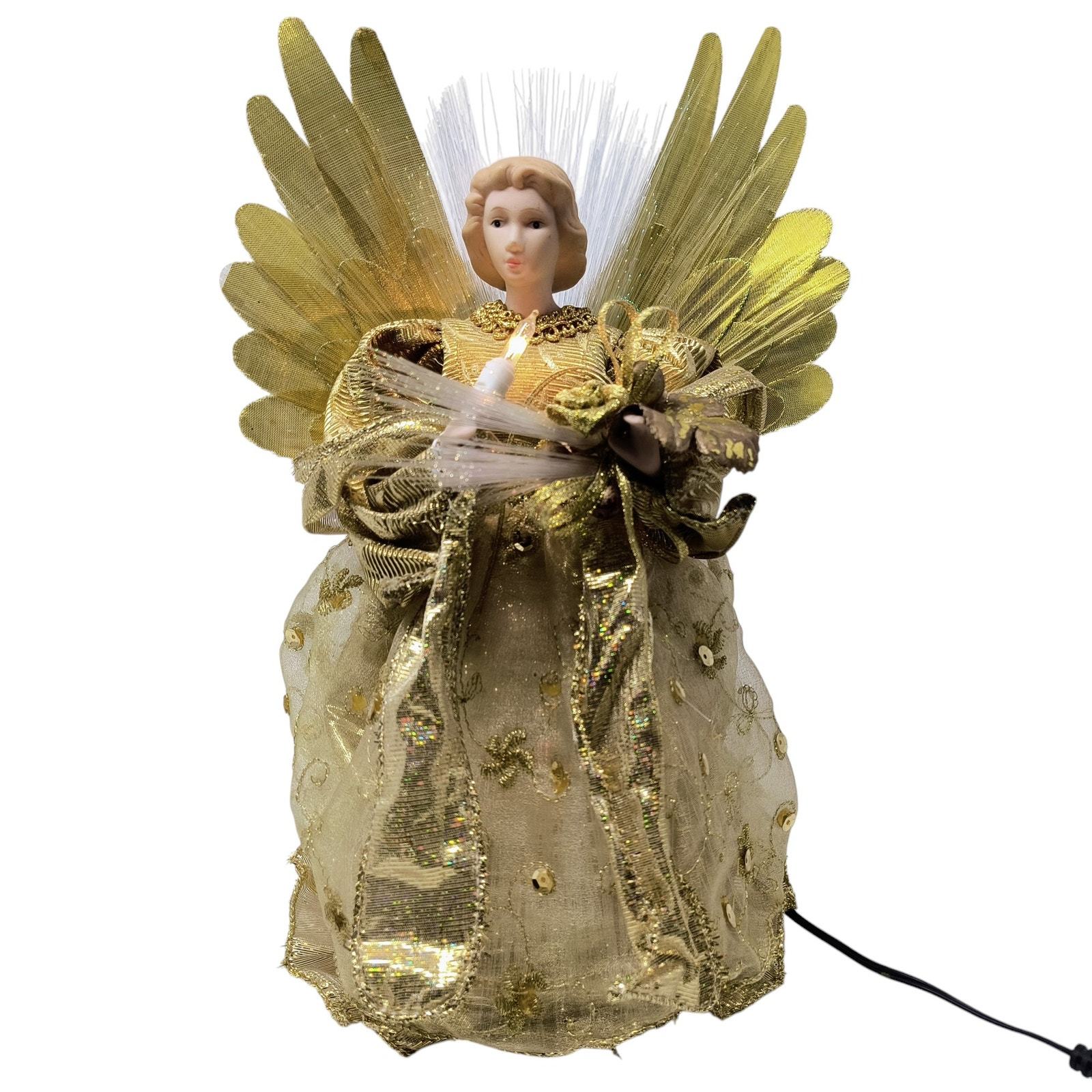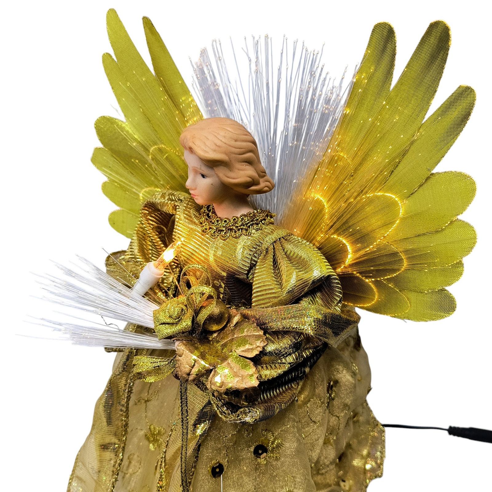 Angel Fiber Optic Lights Porcelain Tabletop Gold 12" Christmas Decorations WORKS