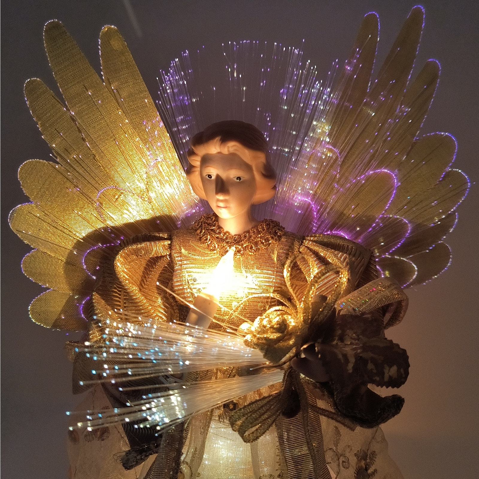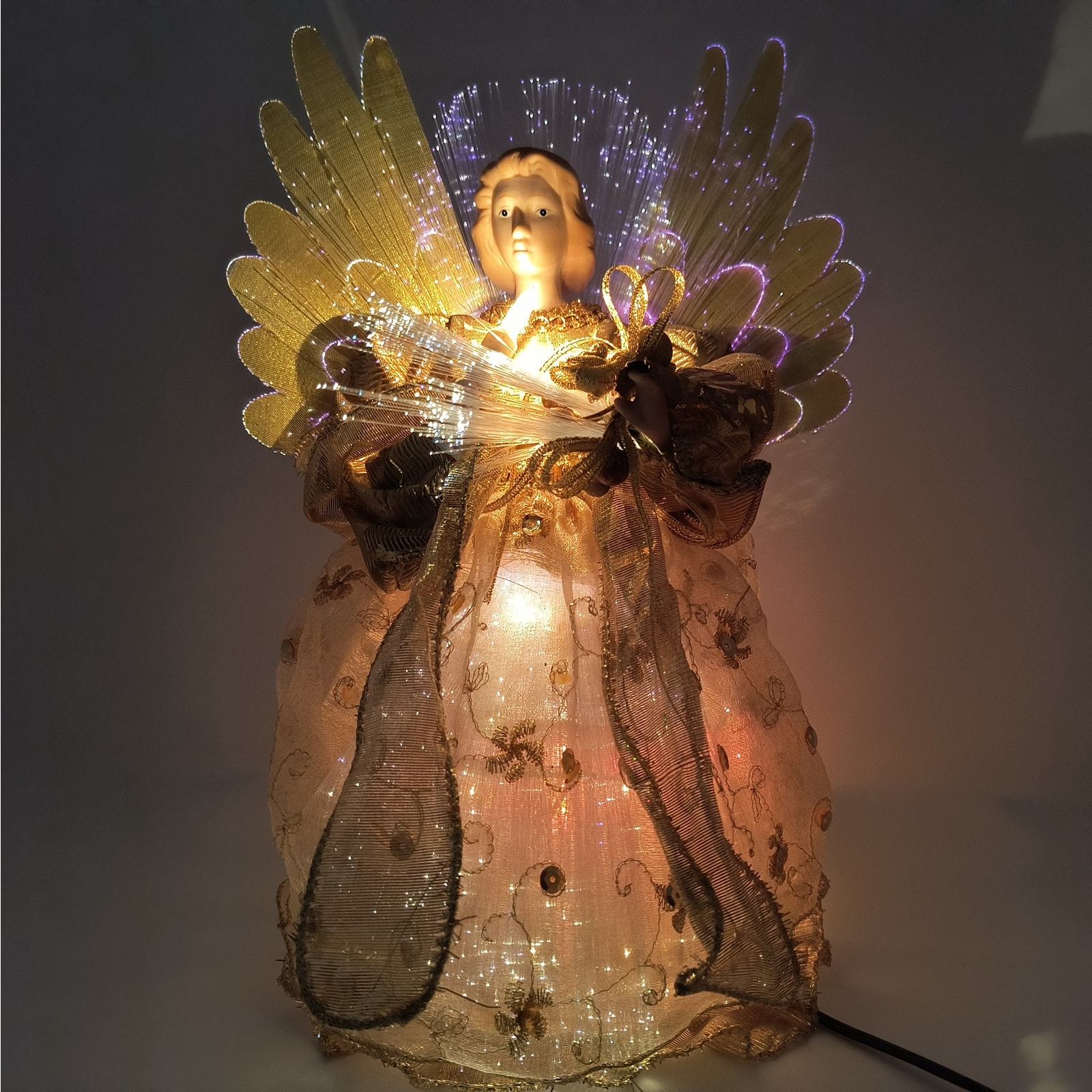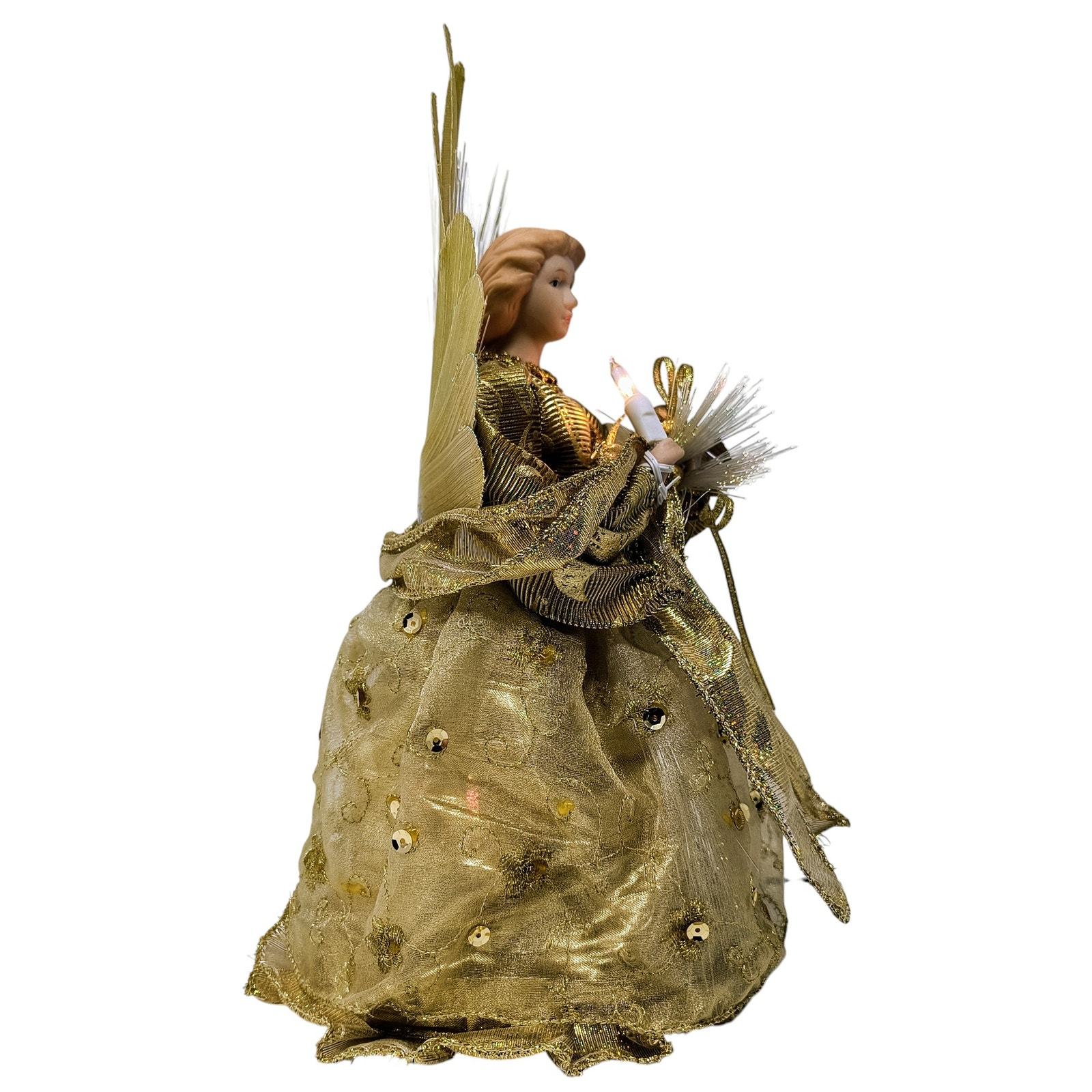 Vintage Tabletop Fiber Optic Porcelain Angel 12" - Gold with Color Changing Lights - Indoor Christmas Decoration