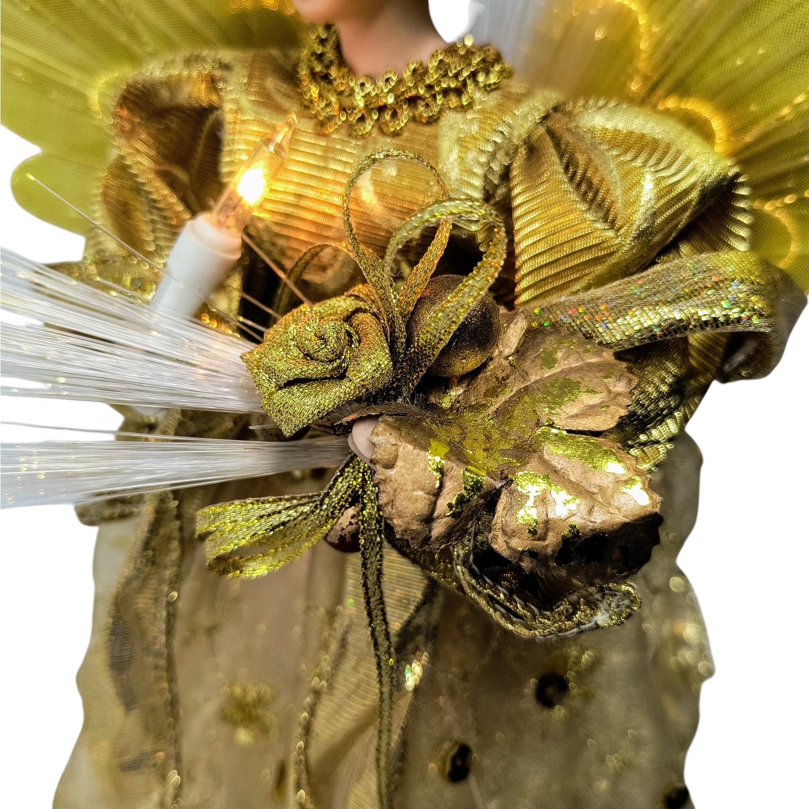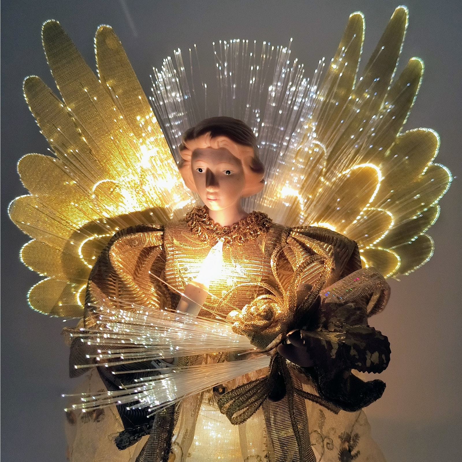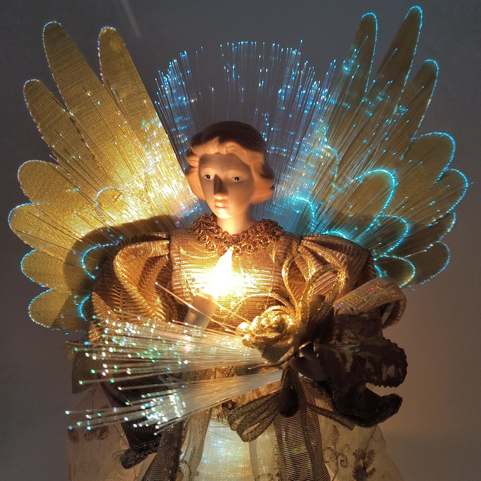 Vintage Tabletop Fiber Optic Porcelain Angel 12" - Gold with Color Changing Lights - Indoor Christmas Decoration
