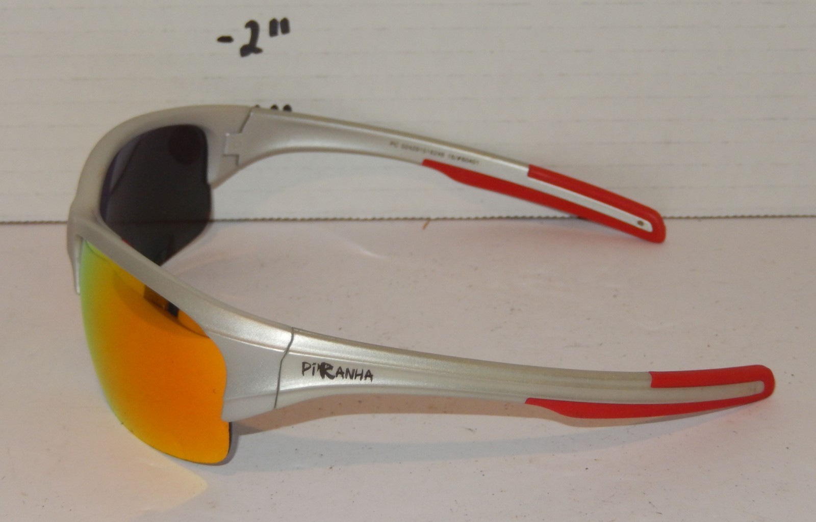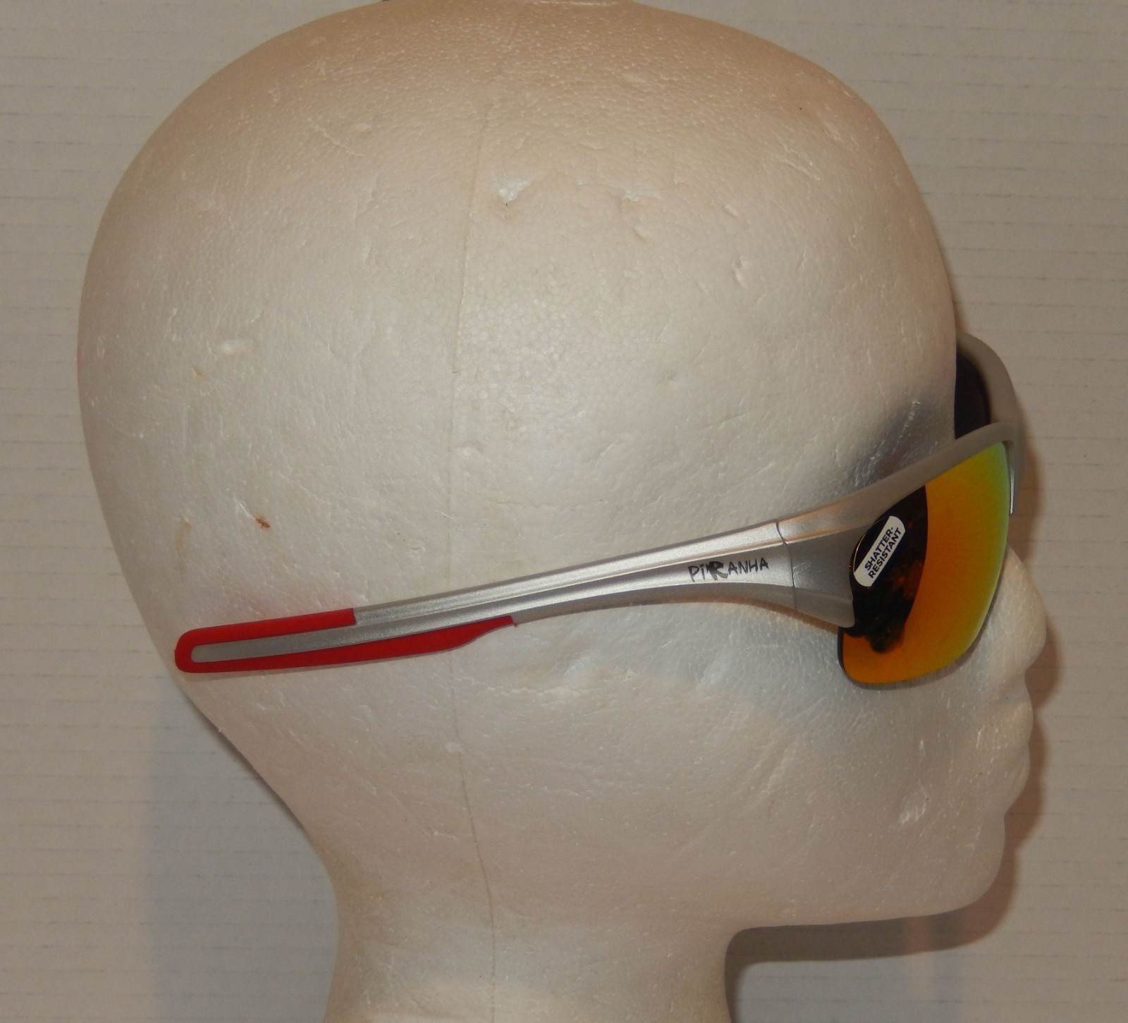 Up for sale is a Piranha Silver Red Sport Sunglasses Mirror Shield Lens Wrap UV400 Men's Outdoor.