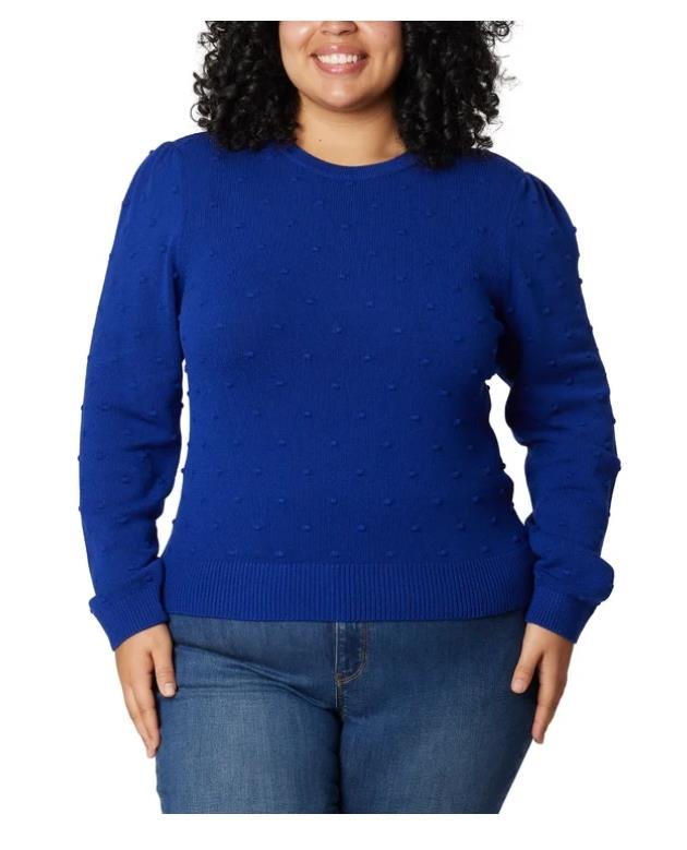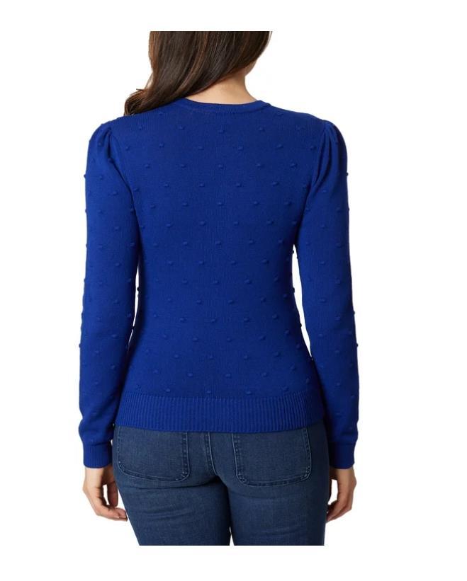 Draper James Womens Sweater Blue Textured Crewneck Long Sleeves Relaxed Fit