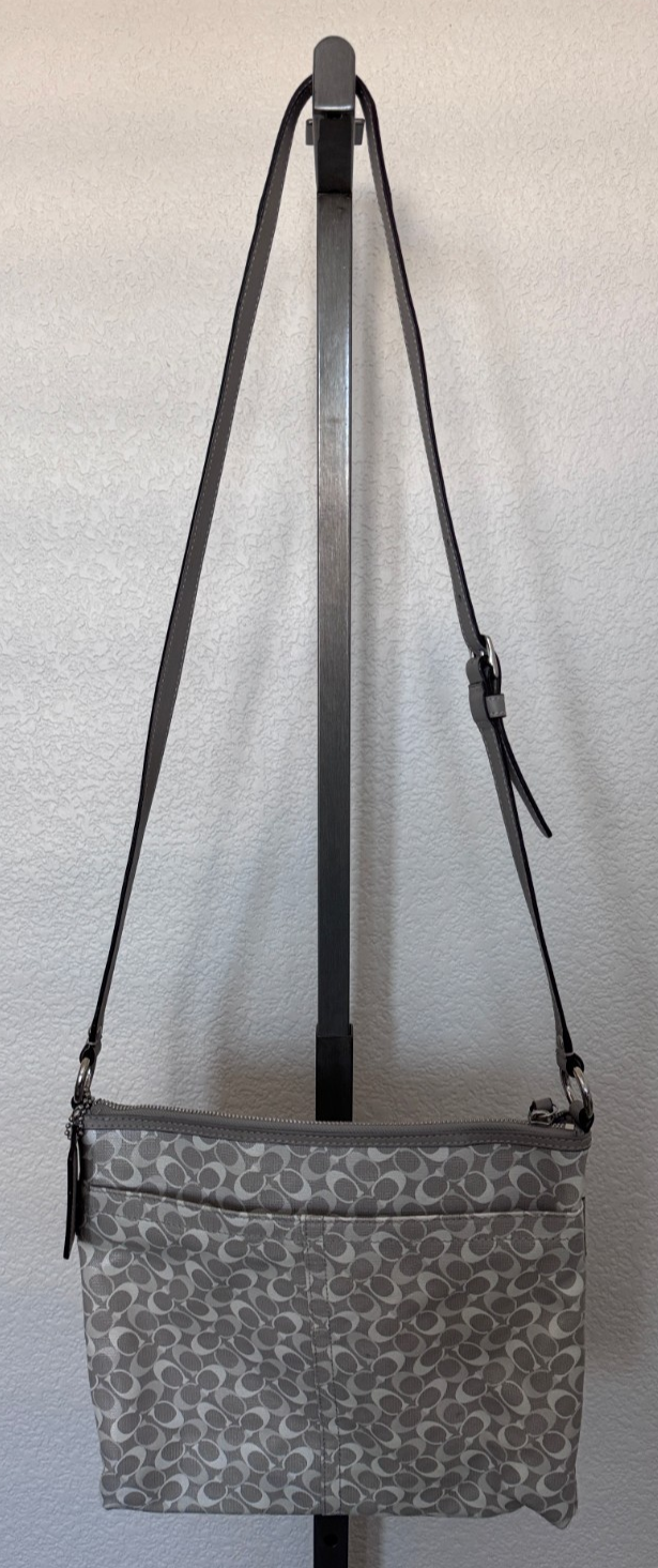 Coach File White Gray Signature Coated Canvas Leather Crossbody Handbag F17120