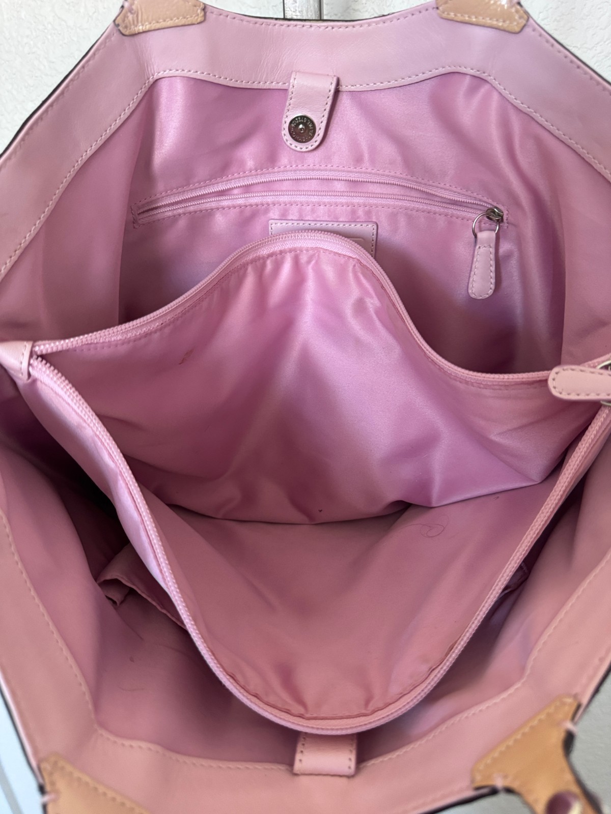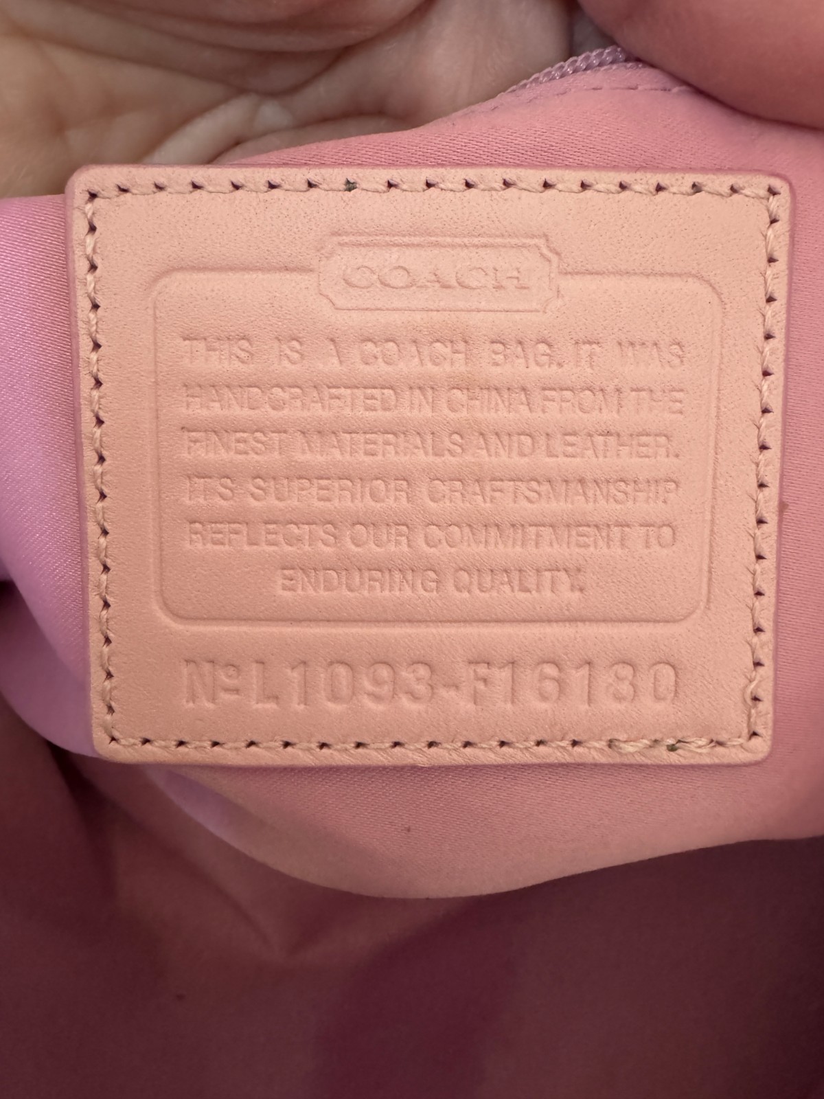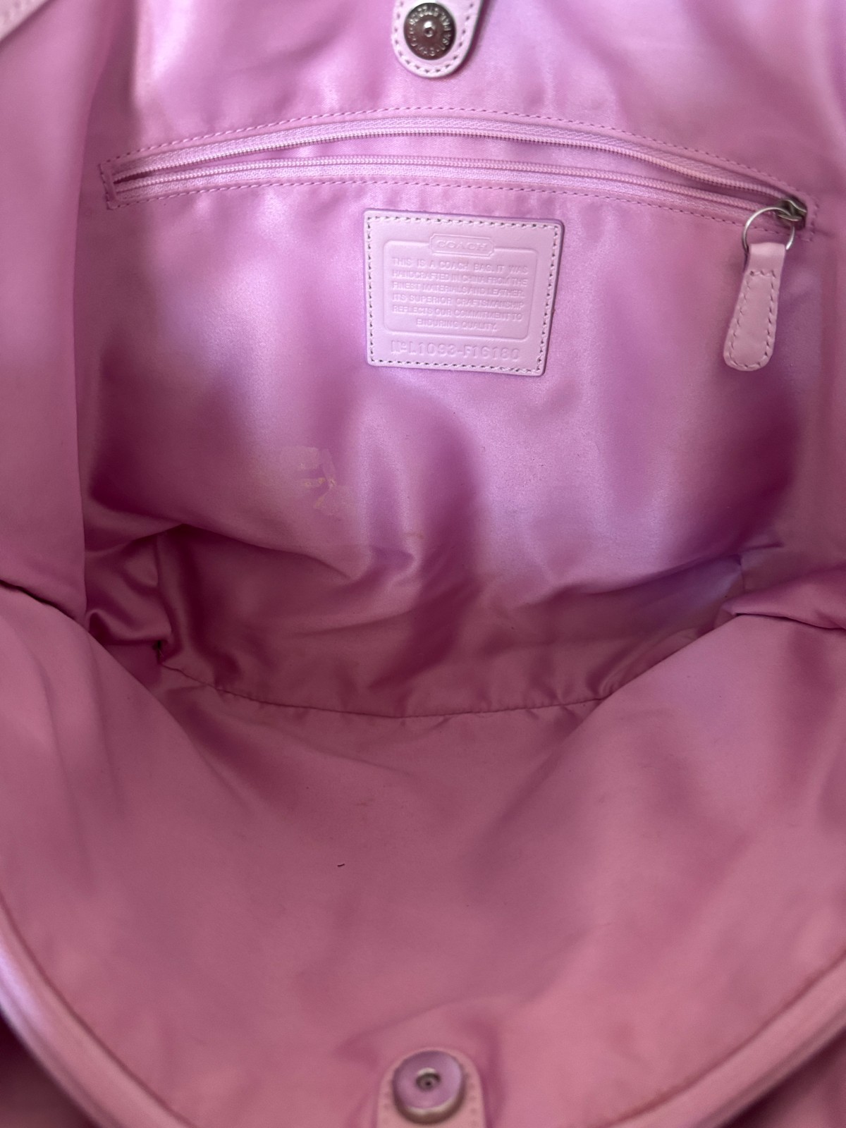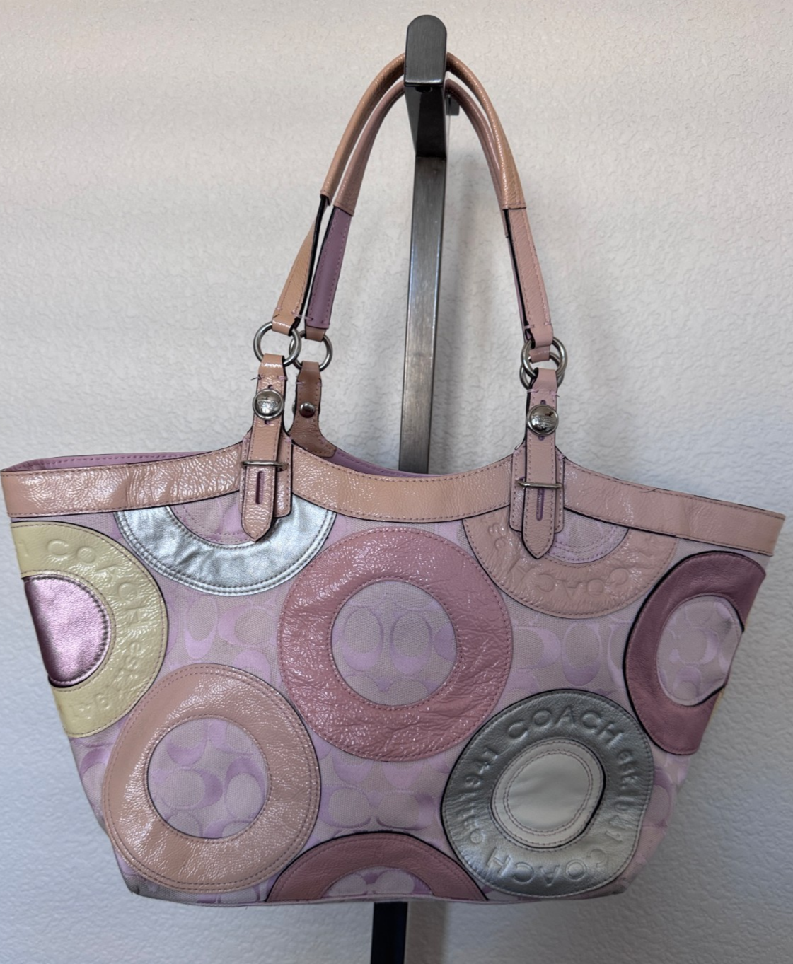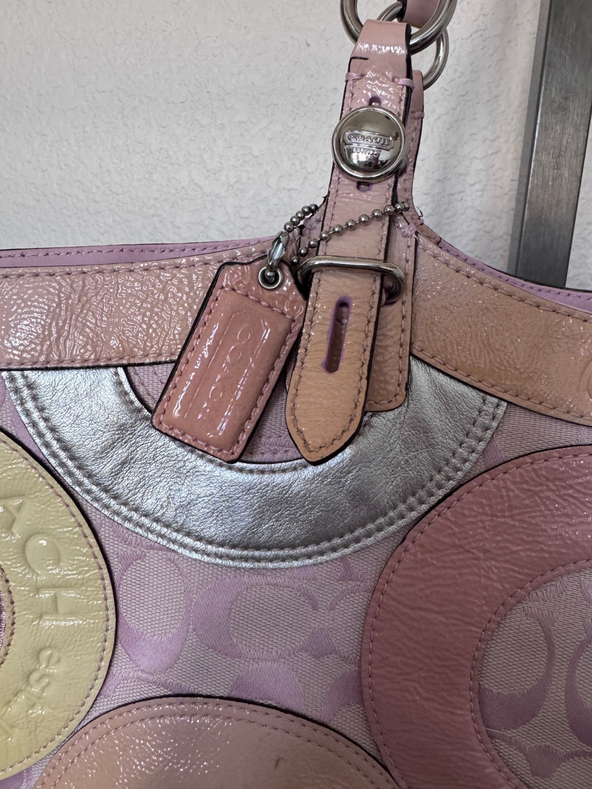 Coach Carly F16180 Circles Patchwork Pink Metallic Signature Leather Tote READ