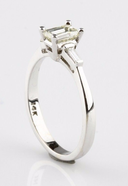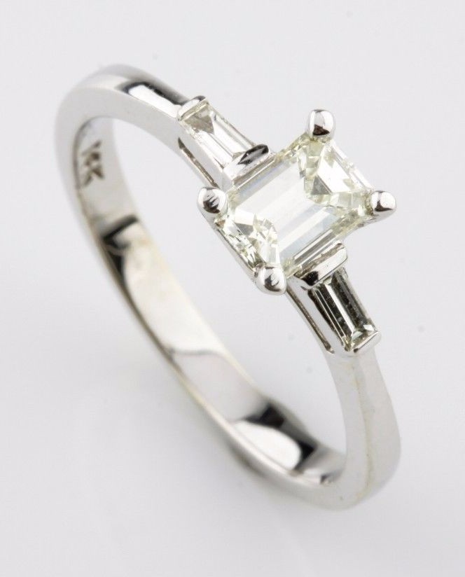 14K White Gold Emerald Cut Diamond Unity Ring w/ Accent Stones TDW = .7 ct Size 6.75