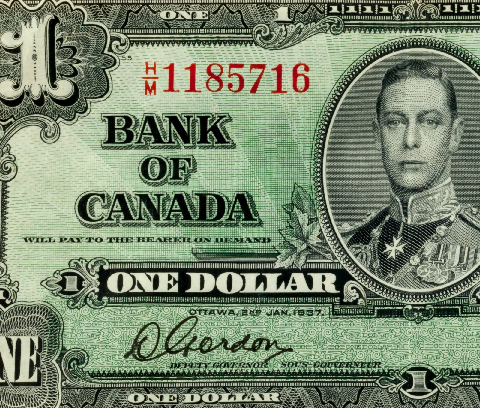 1937 Bank of Canada One Dollar Bank Note (F) Fine Condition Pick# 58d