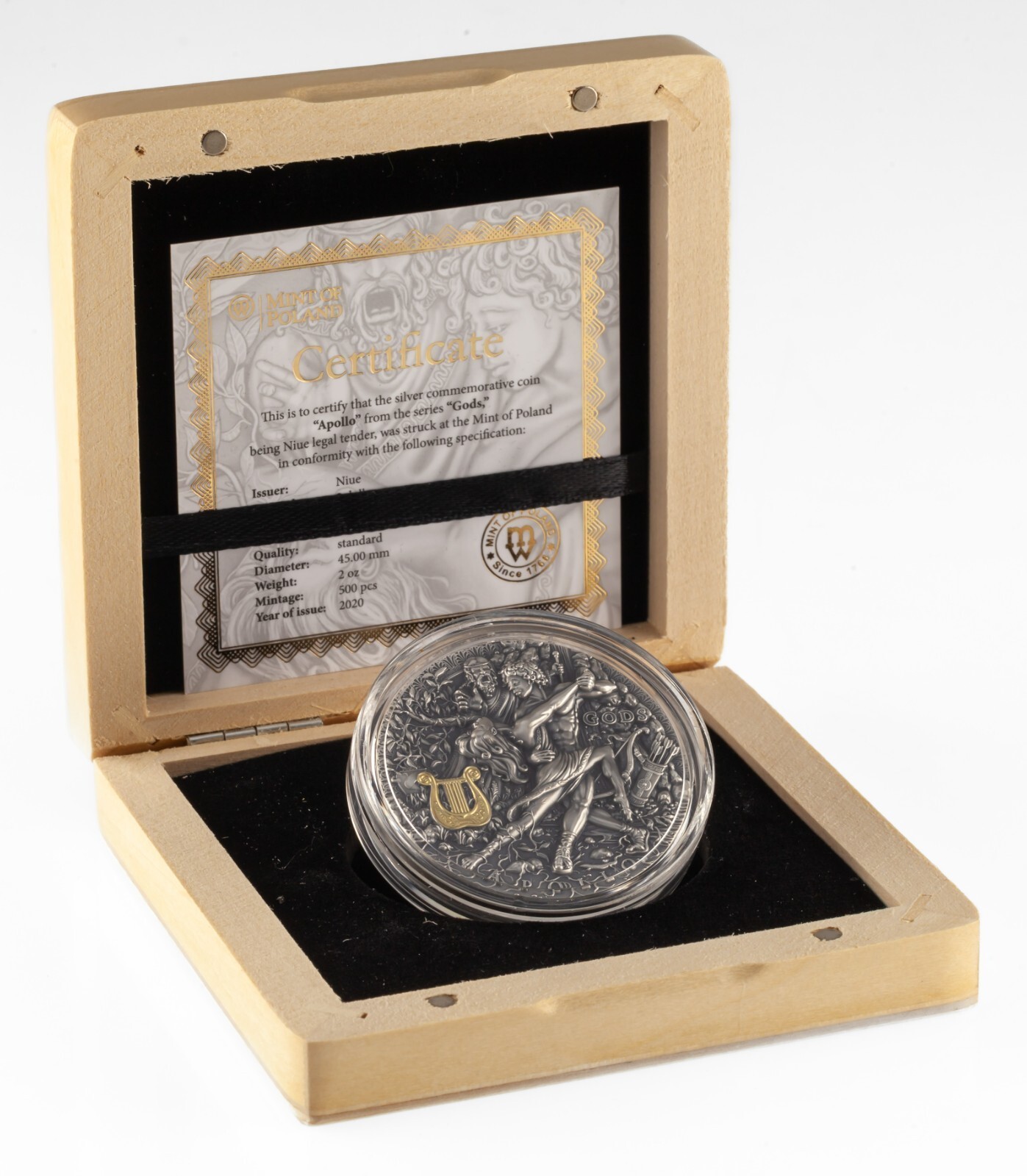 Niue Island 2020 2 Oz Apollo God of the Sun Silver Coin Mintage 500 pcs