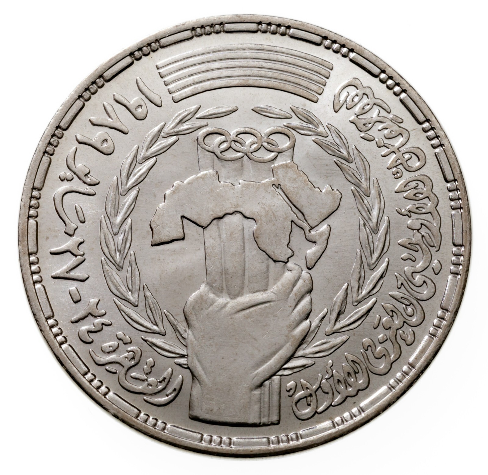 1409-1989 Egypt 5 Pounds Silver Coin in BU, First Arab Olympics KM 667