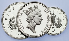 Great Britain Silver Proof 3-Coin Lot // 1990 5 Pence (both types) 1995 Pound