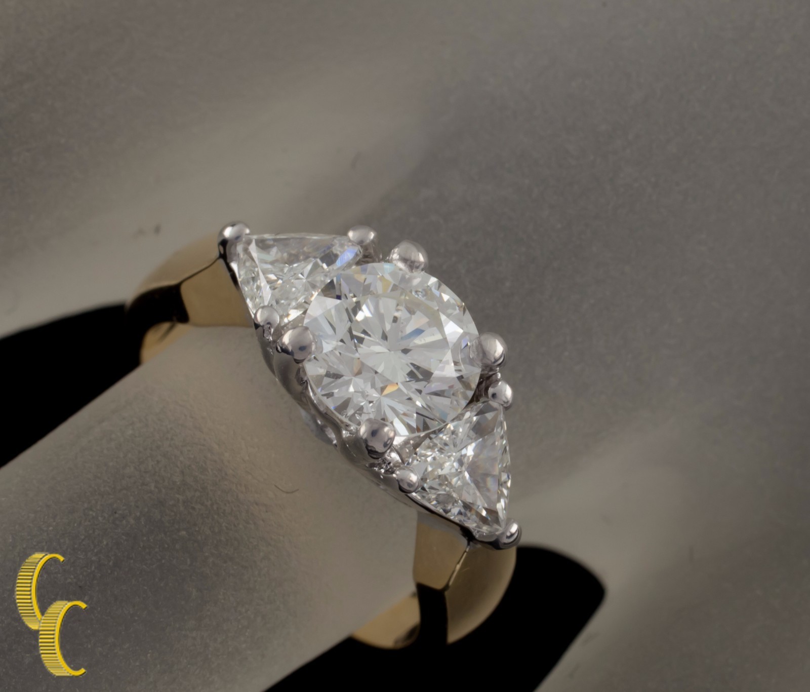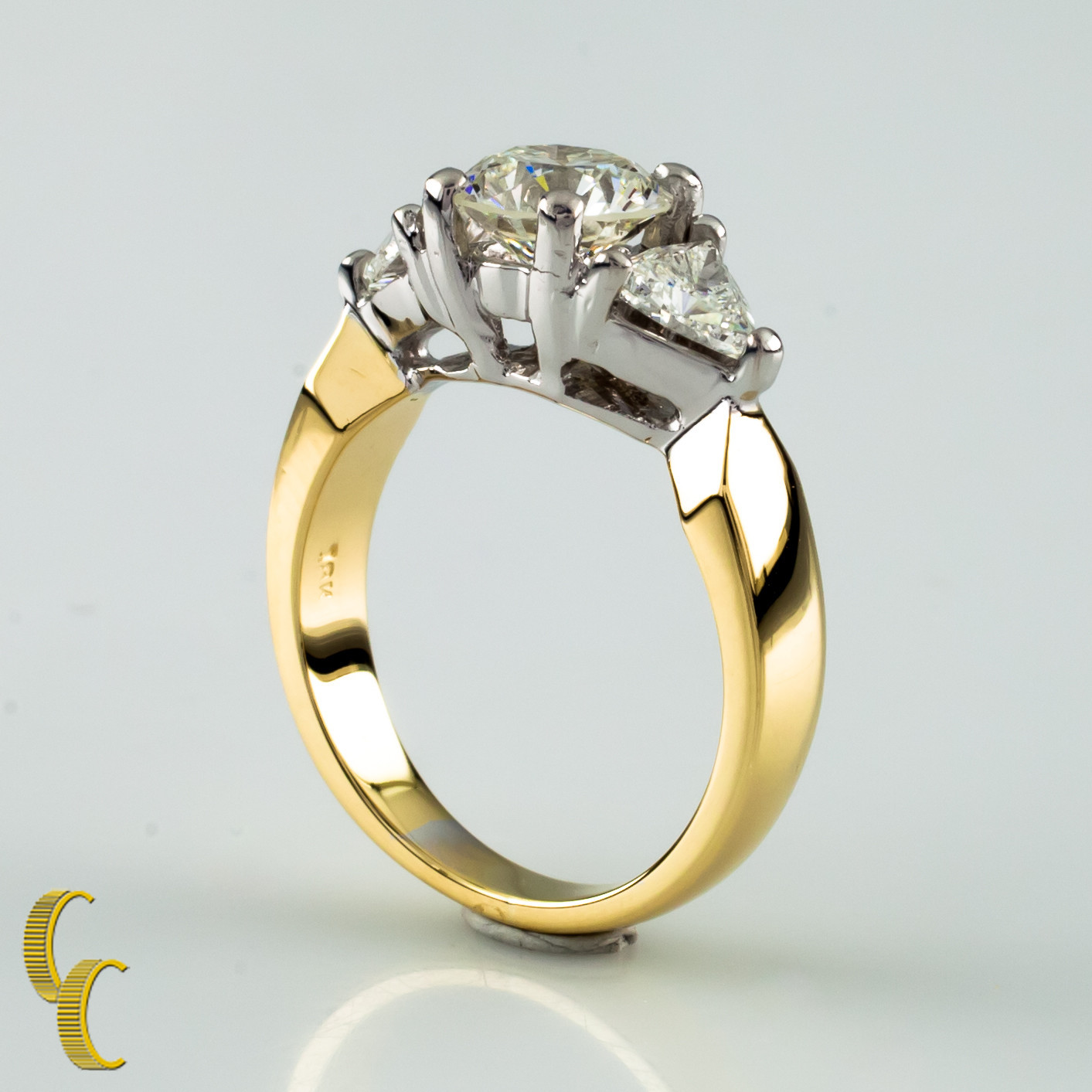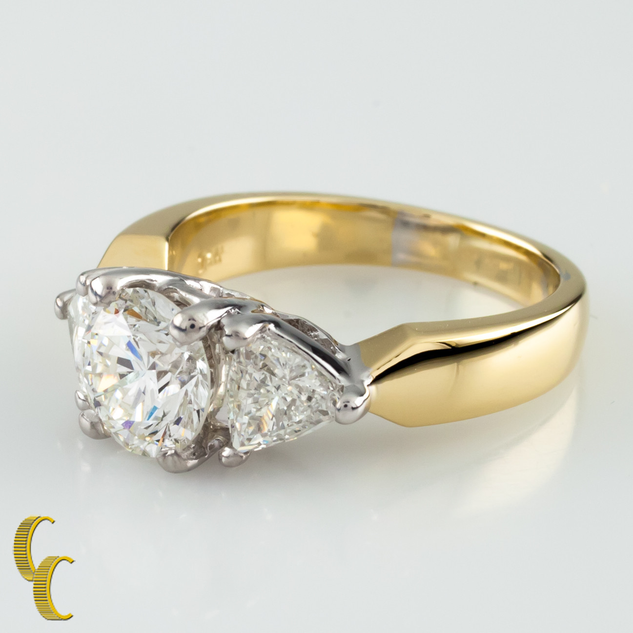 1.91 Carat Round Diamond 3-Stone 18k White & Yellow Gold Engagement Ring size 5