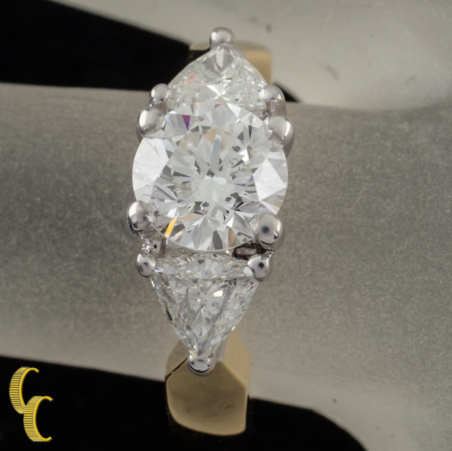 Featuring One Round Brilliant Diamond And Two Trillion Cut Diamonds