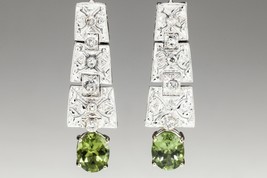 14k White Gold Dangle Earrings with Diamonds Green Peridot Unique Pieces!