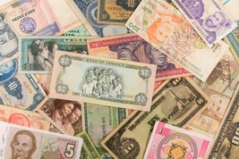 Lot of 50 World Banknotes: Europe, Asia, Central & South America, Various Cond