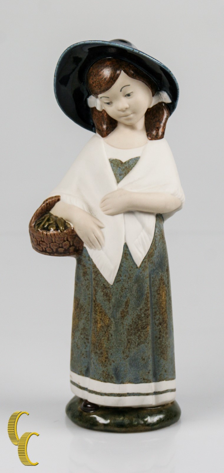 Porcelain Figurine of a Girl with a Hat and Shawl Carrying a Basket