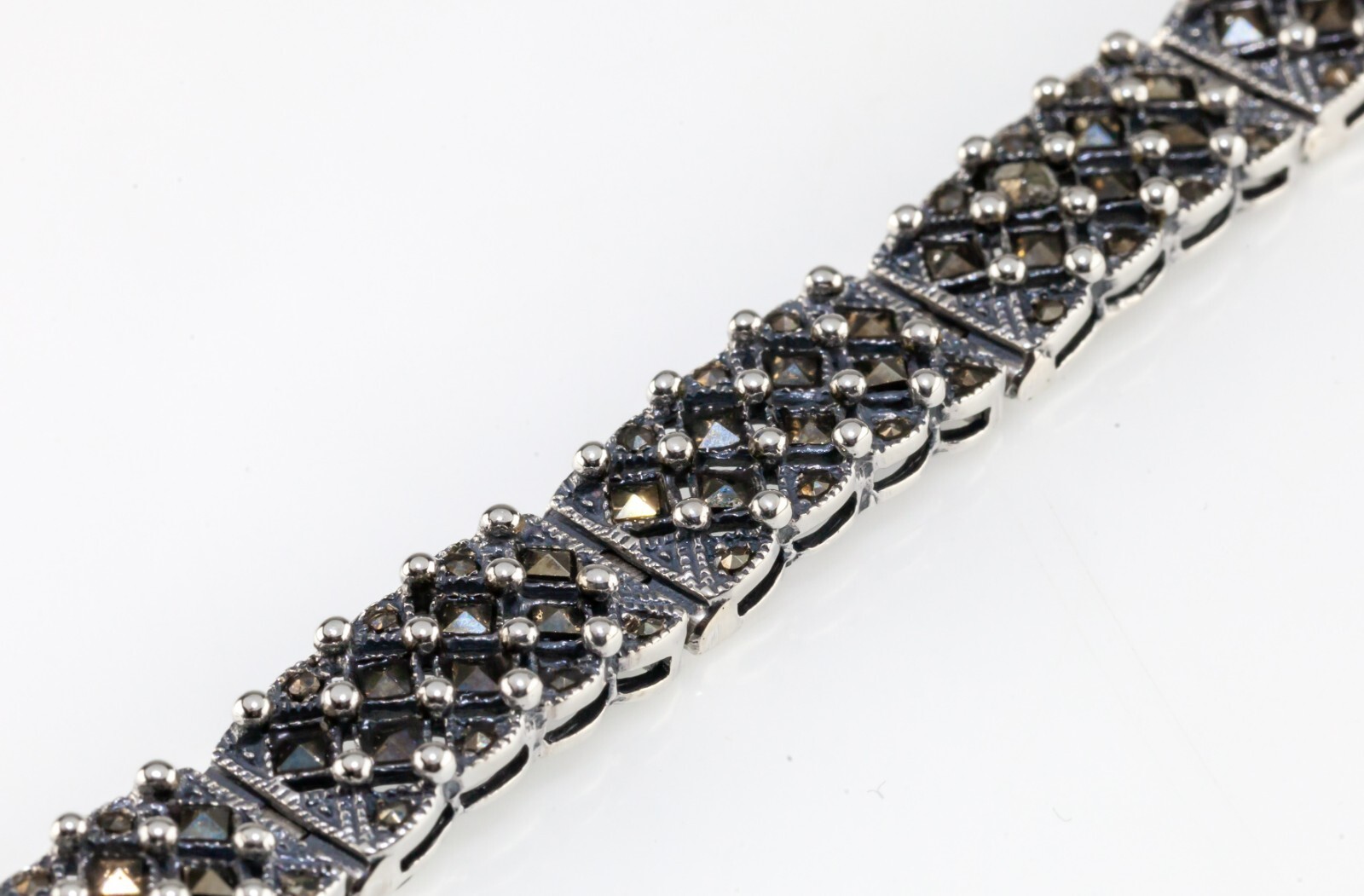 Schöne Sterling Silber Markasit Armband und Ohrringe Set Milgrain Detail