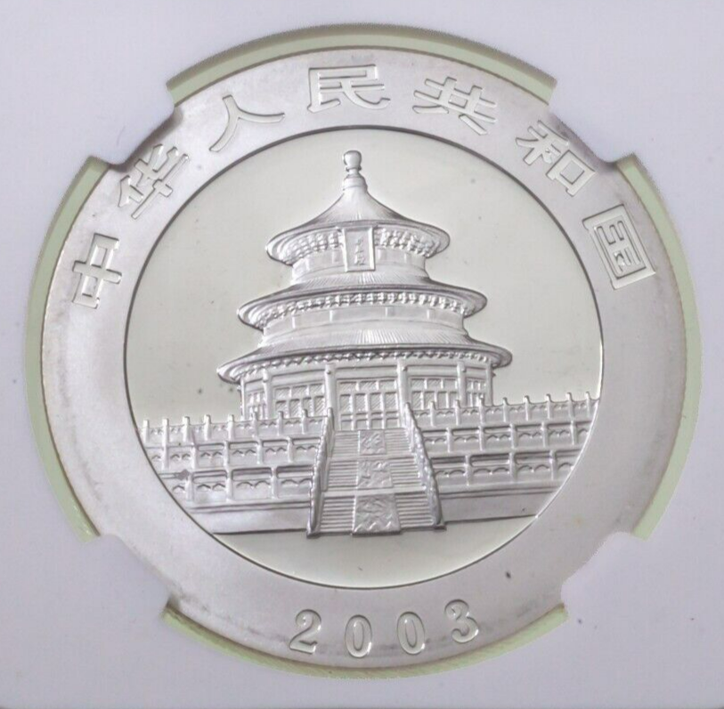2003 China S10Y Silver Panda Frosted Bambus NGC MS70 1 Unzen.