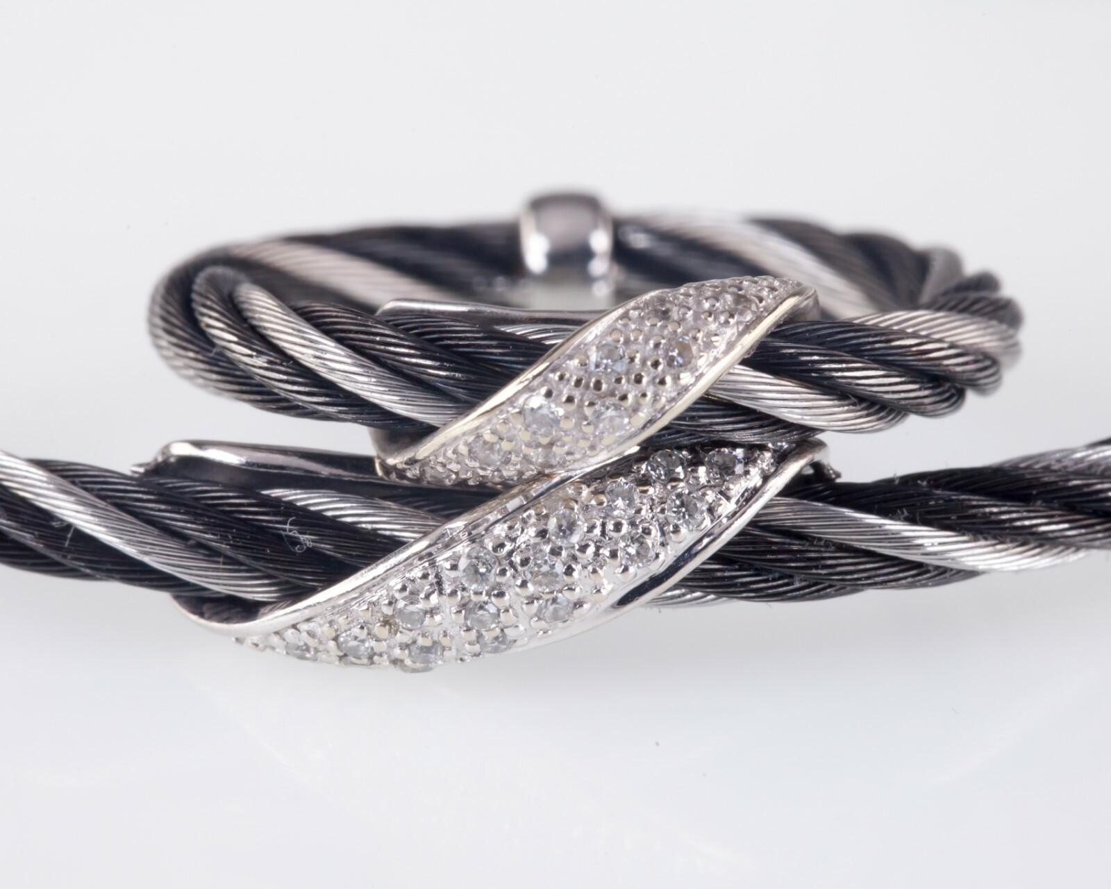 Charriol 18K Gold Und Zweifarbiges Edelstahl Kabelring Armband Set Mit Diamant