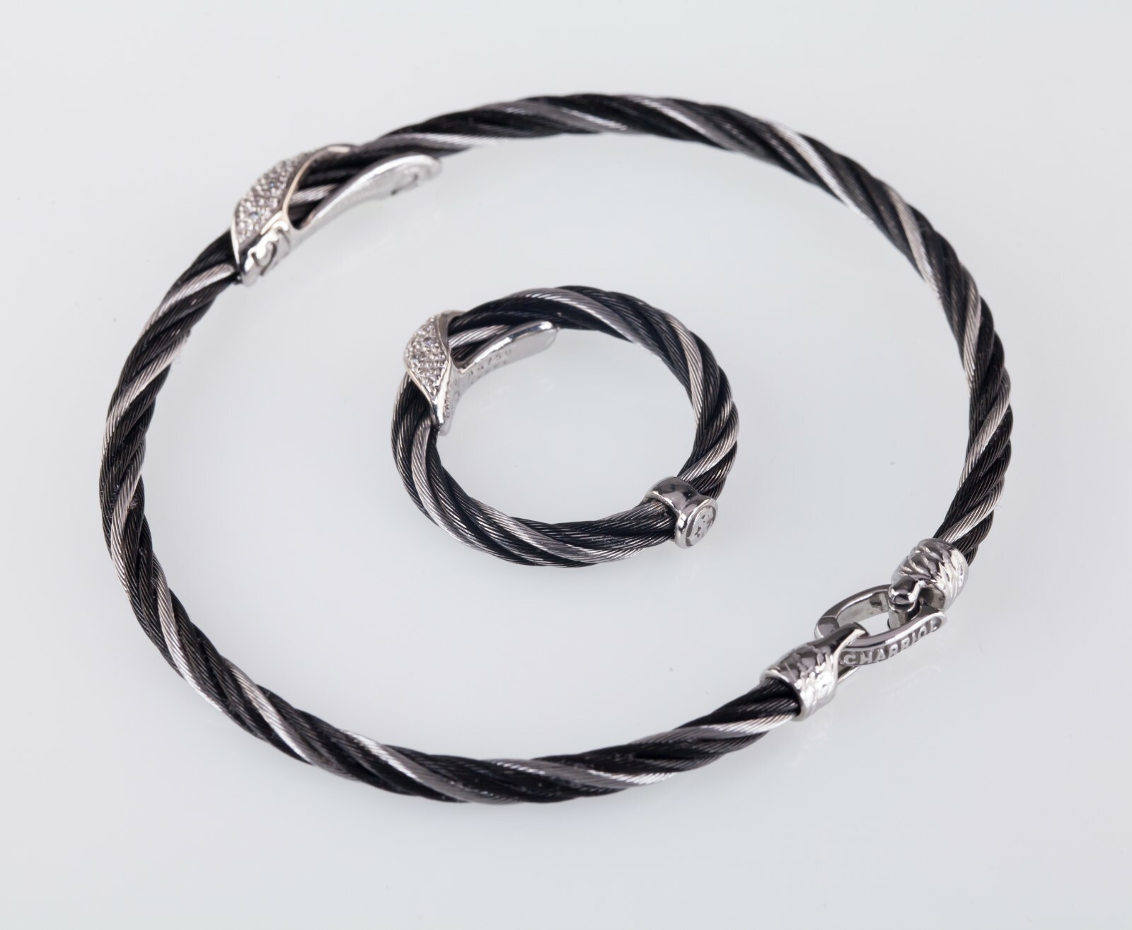 Charriol 18K Gold Und Zweifarbiges Edelstahl Kabelring & Armband Set Mit Diamant