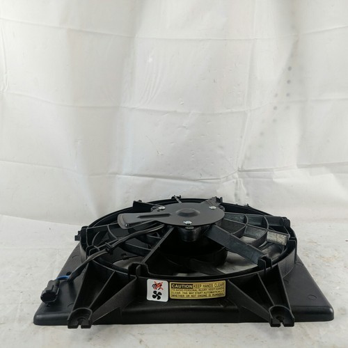 Constructed from durable plastic and steel materials, this A/C condenser fan assembly has been tested for durability and features a curved blade design. It has a voltage of 12V and measures 14.25 inches in length and 16.75 inches in width, with a weight of 4.2 pounds. This product is not a universal fitment and should only be used for the specified vehicles.