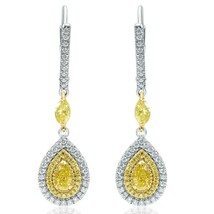2.42 CT Forme Poire Diamant Jaune Larme Halo Boucles D'Oreilles 14k or Blanc