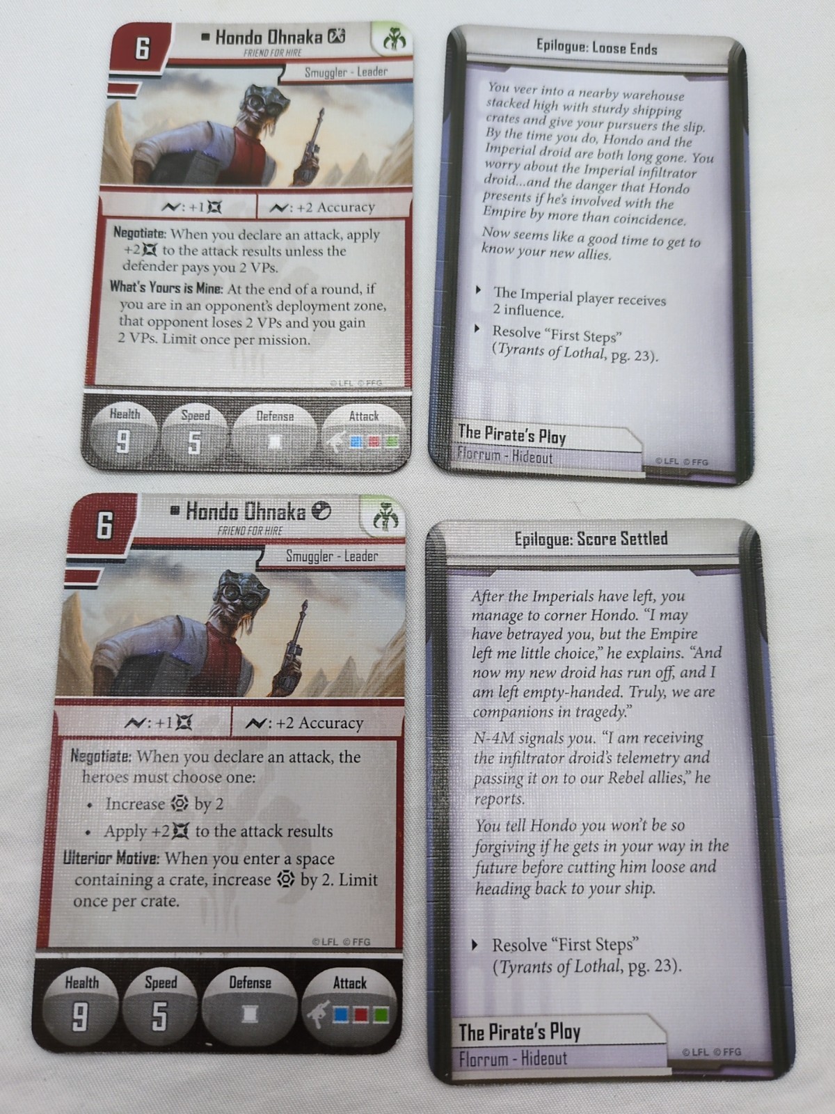 (4) Star Wars Imperial Assault Hondo Ohanka Villain Pack Cards