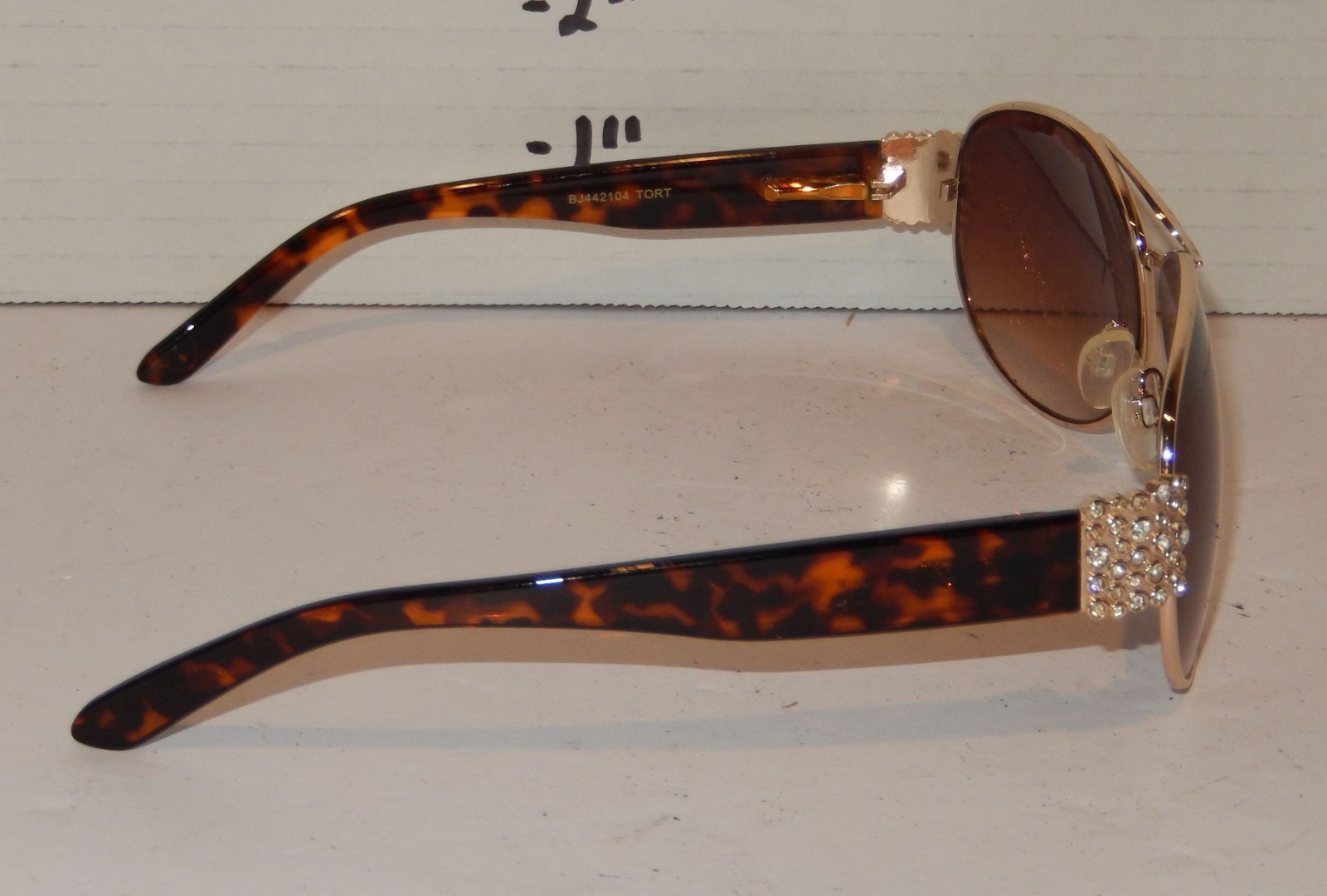 Up for sale is a Betsey Johnson Tortoise Gold Rhinestone Aviator Sunglasses Brown Gradient Women.