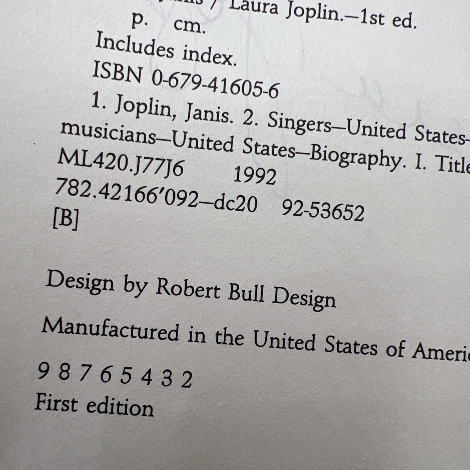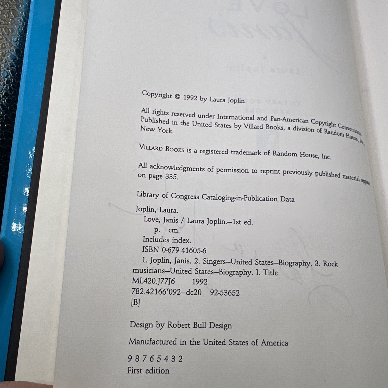 Love, Janis by Laura Joplin (1992, HC/DJ) First Edition Autographed By Author Ra