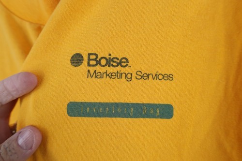 Vtg 90s Mens Size Large Spell Out Boise Marketing Services T-Shirt Yellow USA