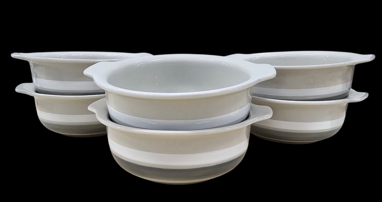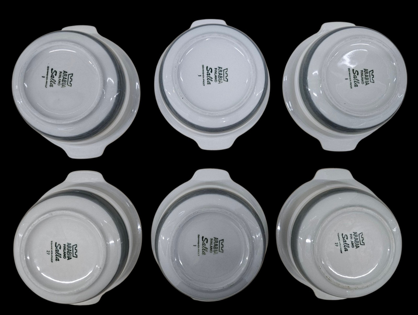 Arabia Finland Salla Lugged Cereal Bowl 6 3/8" Gray Band Inkeri Leivo Stoneware