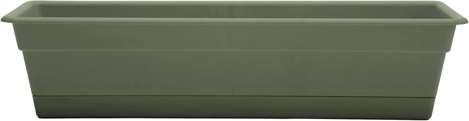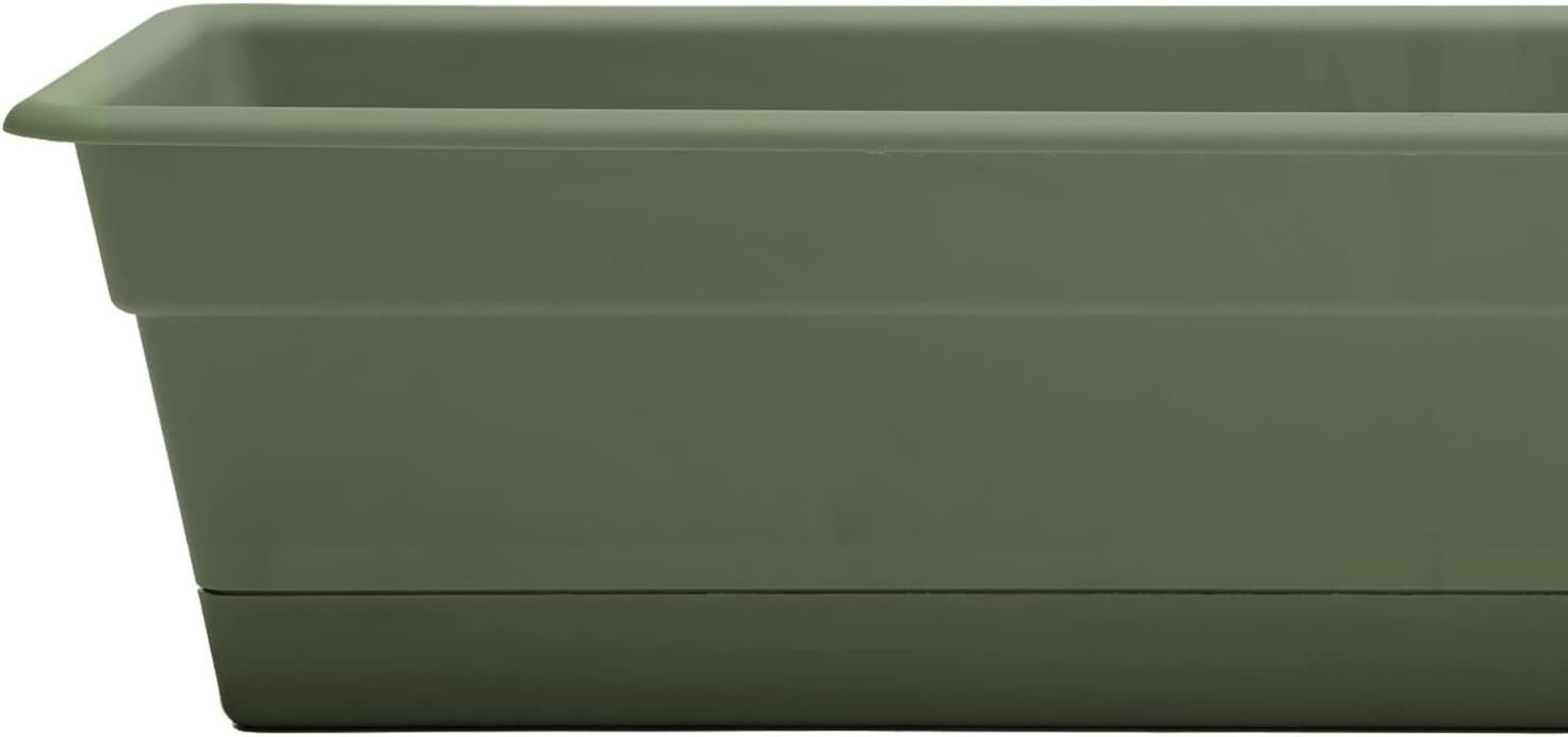 The Bloem DCBT30-42 Dura Cotta Window Box is a 30-inch weatherproof planter crafted from durable, UV-resistant plastic with a realistic terracotta finish in living green. Designed for both indoor and outdoor use, it features pre-drilled drainage holes and a removable saucer tray that captures excess water to protect surfaces and prevent root rot. With a 4-gallon soil capacity, it provides ample space for growing herbs, vegetables, flowers, or ornamental plants. The rectangular shape and modern profile make it ideal for mounting beneath windows, on railings, or as a standalone container on patios and balconies. Made from food-safe plastic (resin codes 2 and 5), it?s safe for edible gardening and resists cracking, fading, and rust in all seasons.