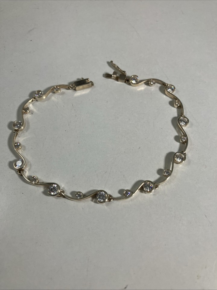 Vintage DQCZ Cubic Zirconia Sterling Silver 7 Inch Tennis Bracelet